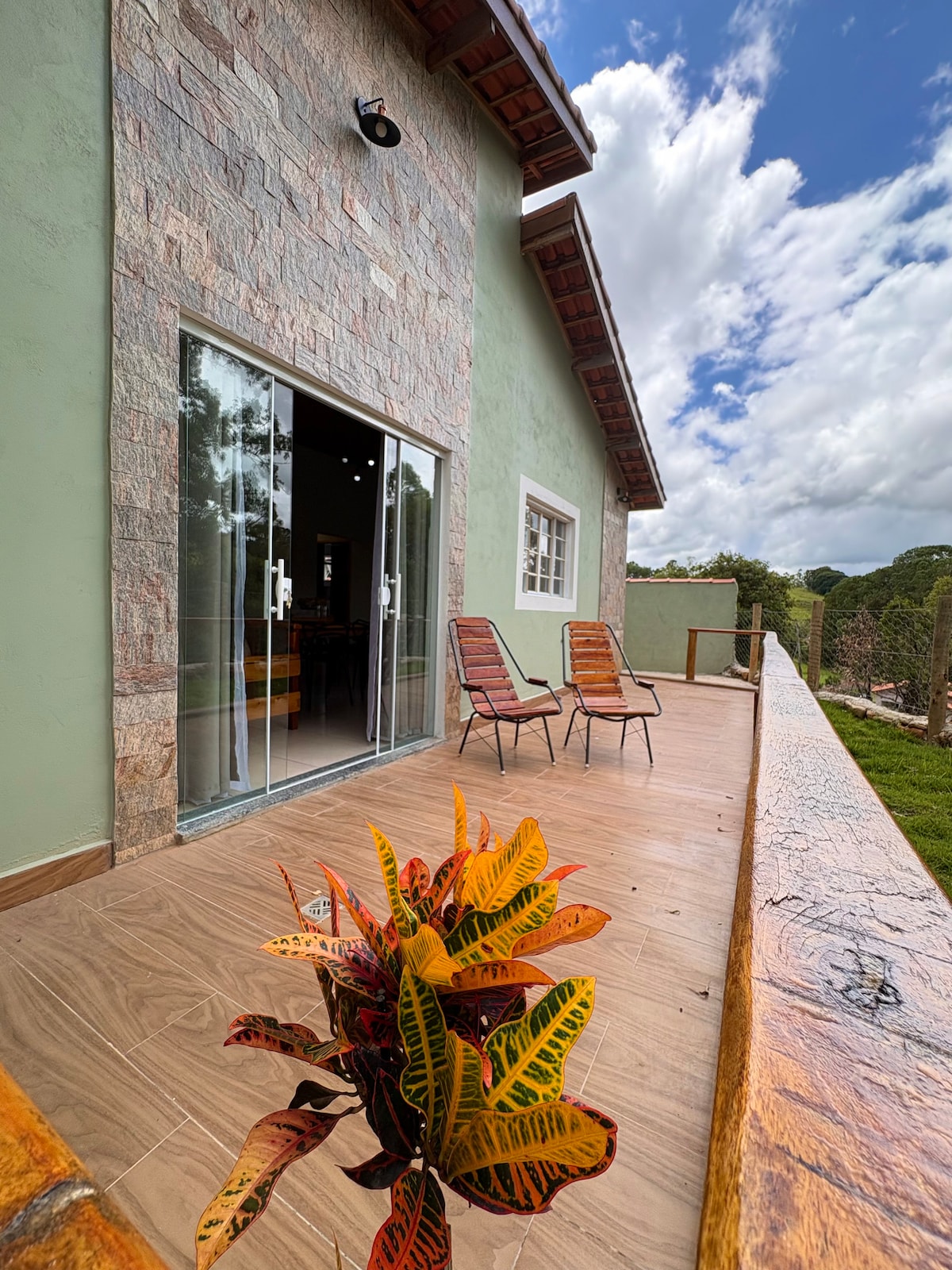Vive la experiencia de alojarte en un chalet rodeado de naturaleza,con plantaciones de cantera de uva y frambuesa. A 100 metros de la bodega Fidêncio de uva y vino. Con una cálida bañera de inmersión con vistas al parreiral,tenemos una cocina completa, cama de matrimonio, televisión inteligente, aire acondicionado por Internet y una terraza de madera,para relajarnos con una hermosa puesta de sol. Sertãozinho 1 y Sertãozinho 2 a 4 km. Te recomendamos que planifiques un menú para hospedar.