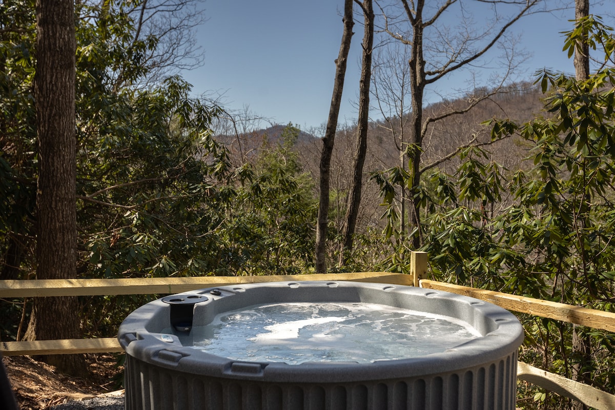 Taproot Sanctuary es un refugio de montaña encantado, rodeado de impresionantes vistas y vastos bosques intactos, a solo 35 minutos del centro de Asheville. Una pequeña escapada perfecta de la vida ajetreada para aquellos que deseen aventurarse un poco fuera de la ciudad. Nuestra encantadora casa del bosque se encuentra dentro del dosel de los árboles, respaldada por el Bosque Nacional Big Ivy Pisgah. Rejuvenece en este refugio increíblemente tranquilo imbuido de una melodiosa orquesta de pájaros e insectos. Relájate en el columpio con una infusión caliente o una bebida refrescante.