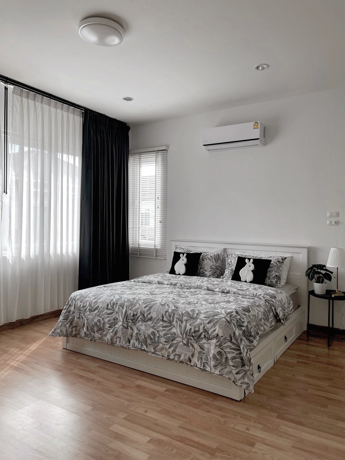 Casa elegante cerca del Circuito Internacional Esta casa moderna tiene una ubicación ideal cerca de Chang Arena (4,2 km), Chang Circuit Buriram (5,9 km) y Big C (1,5 km). LA casa: - Dos dormitorios de alta calidad con cómodas camas tamaño queen. - Dos baños. - Una sala de estar - Cocina totalmente equipada con lavadora. - Wifi de 500 Mbps y TV por cable - Café y agua potable de cortesía. Los dos dormitorios están ubicados en el SEGUNDO piso, mientras que abajo encontrarás la sala de estar y la cocina.