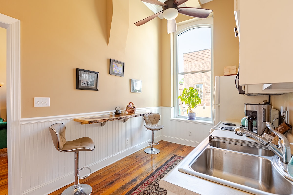 Disfruta de la vibrante vida del centro de la ciudad en este encantador apartamento histórico con servicios modernos. Ubicado en el corazón de Morganton, estás a pocos pasos de fabulosos restaurantes como Root and Vine, Homer's y Treat. Disfruta de la cercanía a tiendas, múltiples cervecerías y mucho más. El apartamento cuenta con una cocina y una nevera de tamaño completo para preparar comidas caseras. Muy cerca podrás explorar excelentes rutas de senderismo y el hermoso lago James. Disfruta de una entrada privada y de un aparcamiento gratuito para huéspedes detrás del edificio.