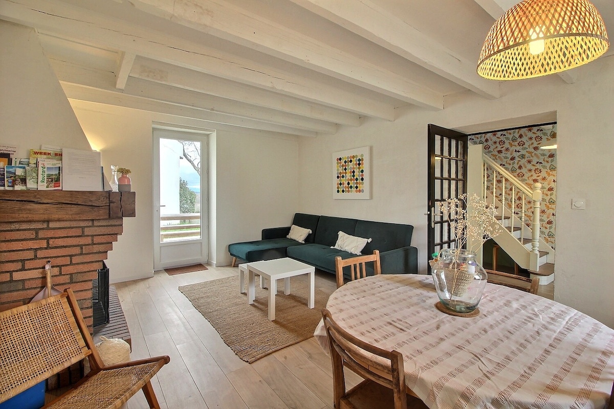 Disfrute en familia o por el trabajo de este fabuloso alojamiento que ofrece buenos momentos en perspectiva Futbolín, libros, patio exterior privado + terraza Planta baja Dormitorio 1: compuesto por una cama de 160 X 200 Dormitorio 2: compuesto por una cama de 160 X 200 compuesto por una cama de 90 X 200 Sofá convertible 160 Para su comodidad, toda la vivienda es espaciosa y con aire acondicionado.