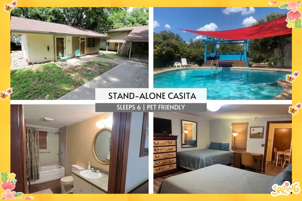 ¡Una unidad caprichosa que captura la verdadera estética “Keep Austin Weird”, River Ranch Inn es el lugar perfecto para tu escapada única a Texas! La posada tiene una rica historia llena de divertidas aventuras, músicos itinerantes y arte ecléctico que durante mucho tiempo la ha convertido en un lugar popular cerca de Austin. River Ranch Inn tiene algo para todos los gustos con su ambiente de espíritu libre y su conveniente ubicación.