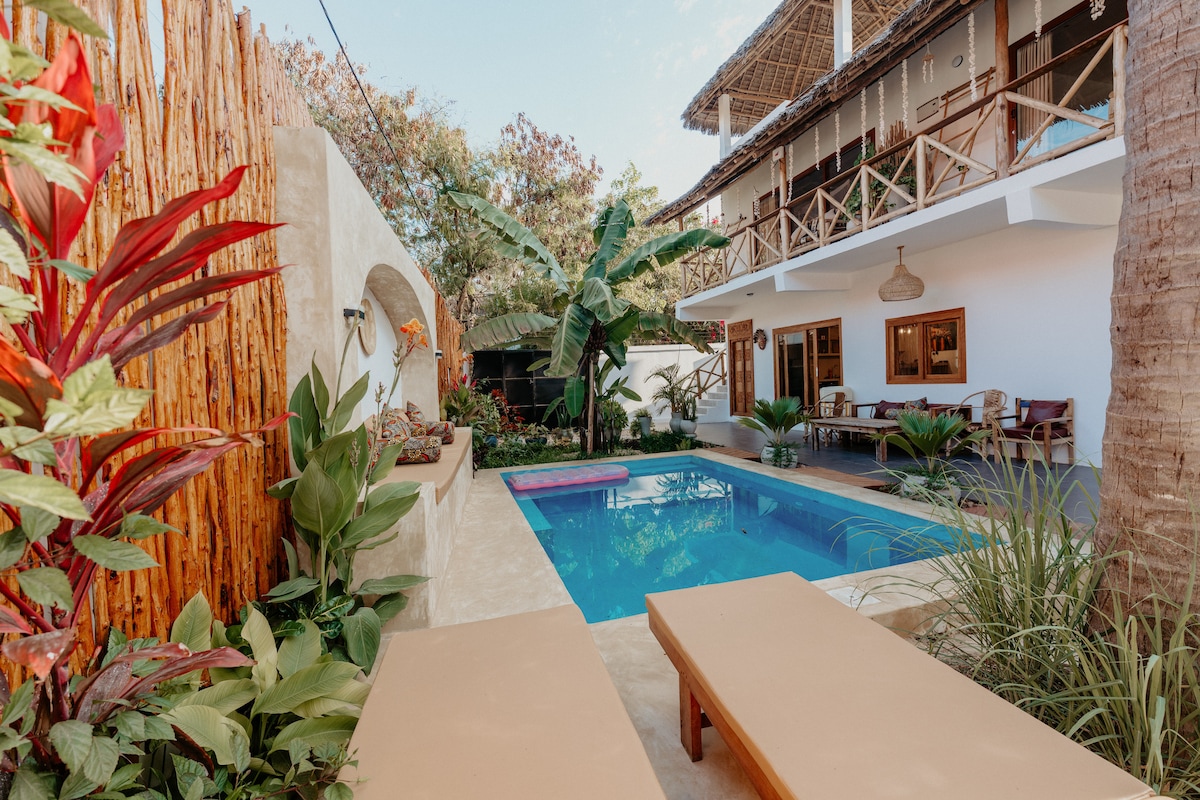 🌴Saranga Villa: ¡tu paraíso tropical en Jambiani! A solo 3 minutos a pie de la playa, esta villa de 3 dormitorios ofrece una piscina privada, atardeceres en la azotea, wifi y un exuberante jardín. Disfruta de la comodidad, la privacidad y el ambiente isleño: ¡la escapada perfecta a Zanzíbar!