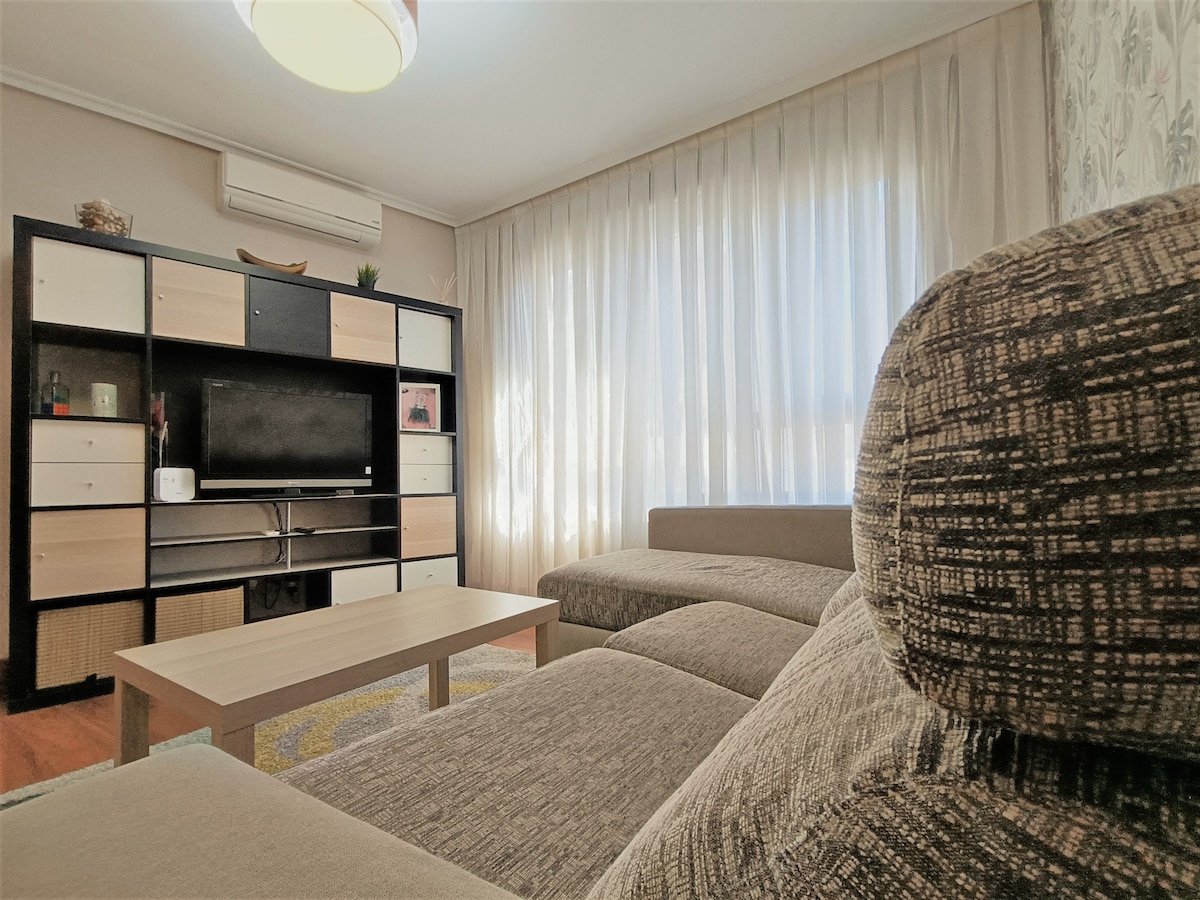 Disfruta de la sencillez de este alojamiento tranquilo y céntrico. Piso reformado en el 2021 en el centro de Mungia, ideal para parejas o familias. - 2 habitaciones (1 cama de matrimonio en cada una). - 1 baño - Vestidor - Salón - Cocina No dispone de parking privado pero es fácil aparcar en la zona. Es un cuarto piso SIN ASCENSOR. A 13km de las playas de Bakio y Gorliz y a 16km de Bilbao. A 10km del Aeropuerto de Bilbao. Perfecto para conocer los alrededores de la provincia de Bizkaia.