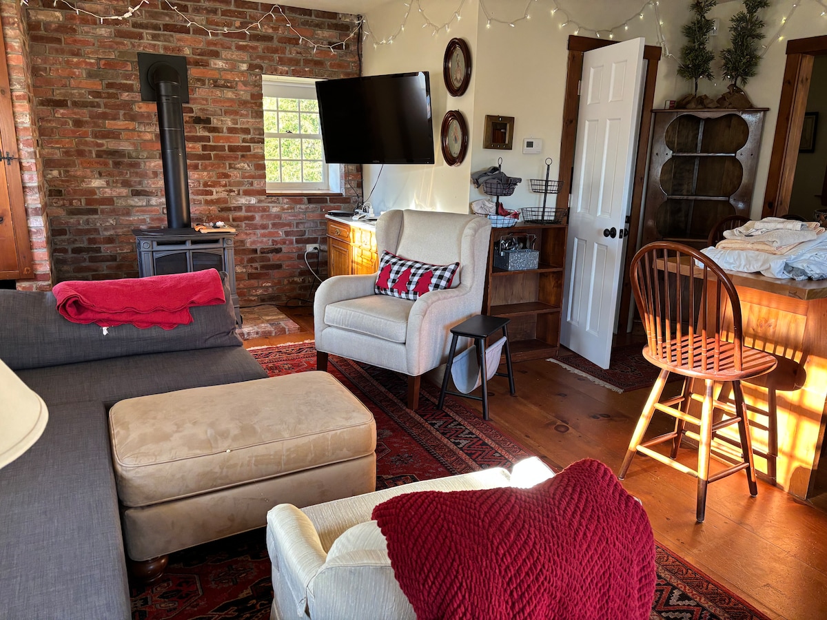 Es una pequeña casa justo al lado de nuestra casa con un baño compartido dentro de nuestra casa principal. Hace cincuenta años, era la "casa de la leche" donde se almacenaba la leche de la granja antes de ir a la ciudad, pero en estos días es una pequeña casa acogedora. El espacio funciona bien para parejas y aventureros solitarios. ¡También nos encantan los niños si crees que puedes meterte! Disfruta de Vermont en un camino de tierra rodeado de naturaleza y vistas increíbles, pero cerca de Goddard College, la ciudad de Montpelier, Barre Granite Quarries, Cabot Creamery.