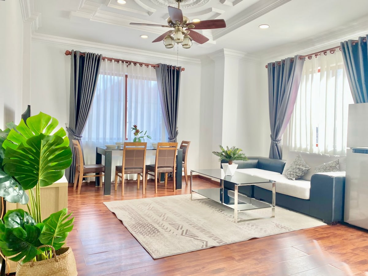 Amplia cama tamaño king/baño privado/sala de estar independiente y cocina con elementos esenciales/balcón con vista a la ciudad o a la azotea/acceso al ascensor/seguridad las 24 horas/servicio a la habitación semanal/lavadora/aire acondicionado/Wifi gratuito/ estacionamiento en el lugar, etc. ¡Queremos que te sientas como en casa! Con una ubicación céntrica en Phnom Penh, este apartamento está a aproximadamente 1 km del Estadio Nacional Olímpico y del Museo del Genocidio Tuol Sleng, a 2 km del mercado ruso y del mercado central, a 3,5 km del Palacio Real, el Museo Nacional, Wat Phnom y The Riverside.