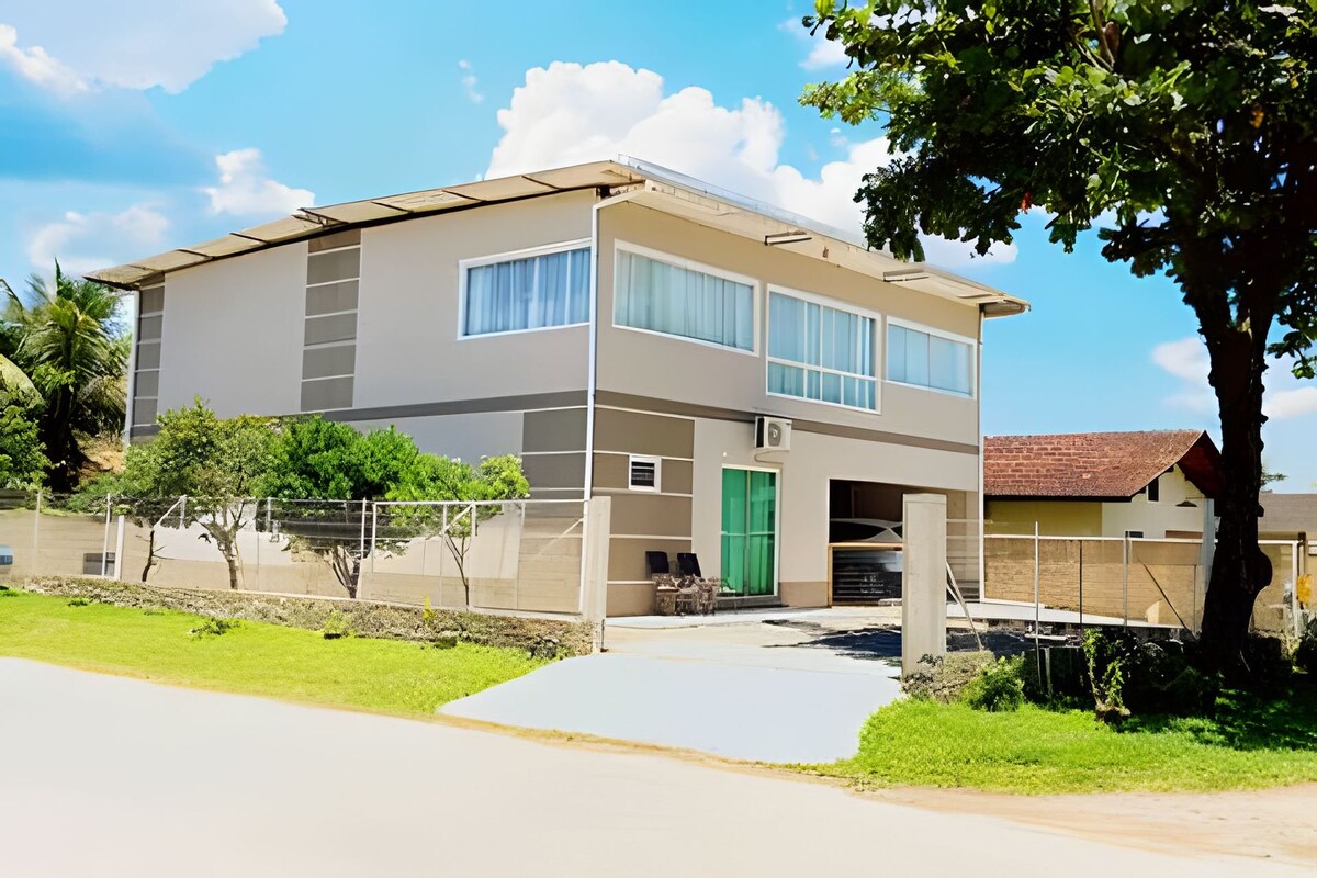 Hermosa casa, diseñada para ofrecer privacidad y ocio exclusivo. Compuesto por 2 dormitorios con aire acondicionado, 1 suite principal de lujo, acogedora sala de estar integrada con el balcón, cocina gourmet súper equipada (con AirFryer y purificador), lavandería con lavadora y una increíble área al aire libre con piscina, cascada y parrilla cubierta. Garaje grande y cubierto, puerta cerrada y seguridad total. Internet rápido.