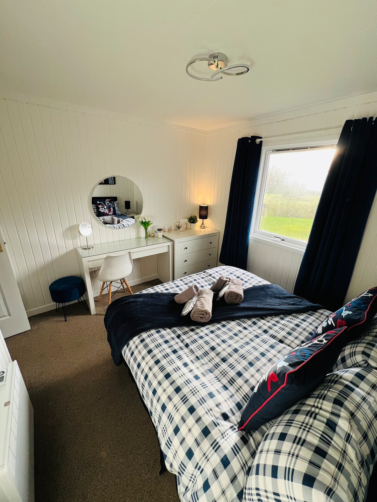 Escape to our charming two-bedroom lodge, perfect for families or couples looking to relax and unwind. Tucked away at the end of the park, you'll enjoy peace, privacy, and stunning natural surroundings. The lodge features a fully equipped brand-new kitchen, stylish decor throughout, and a spacious deck with a hammock – perfect for morning coffee or evening stargazing. Whether you're cooking a homemade meal or exploring the nearby nature trails, this is your perfect getaway spot.
