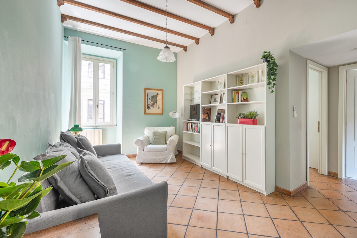 Este pequeño apartamento en el corazón de Roma es un lugar que amo y que me ha brindado momentos inolvidables. Creo que es un rincón perfecto para dos. Se puede llegar a pie a todos los lugares principales del centro. Es ideal para dos personas porque sólo tiene un dormitorio y un baño pero, excepcionalmente, lo alquilo para un máximo de 4 personas con familias con dos niños en mente. En el salón hay dos sillones que se convierten en camas. ¡En julio y agosto disfruta del aire acondicionado!