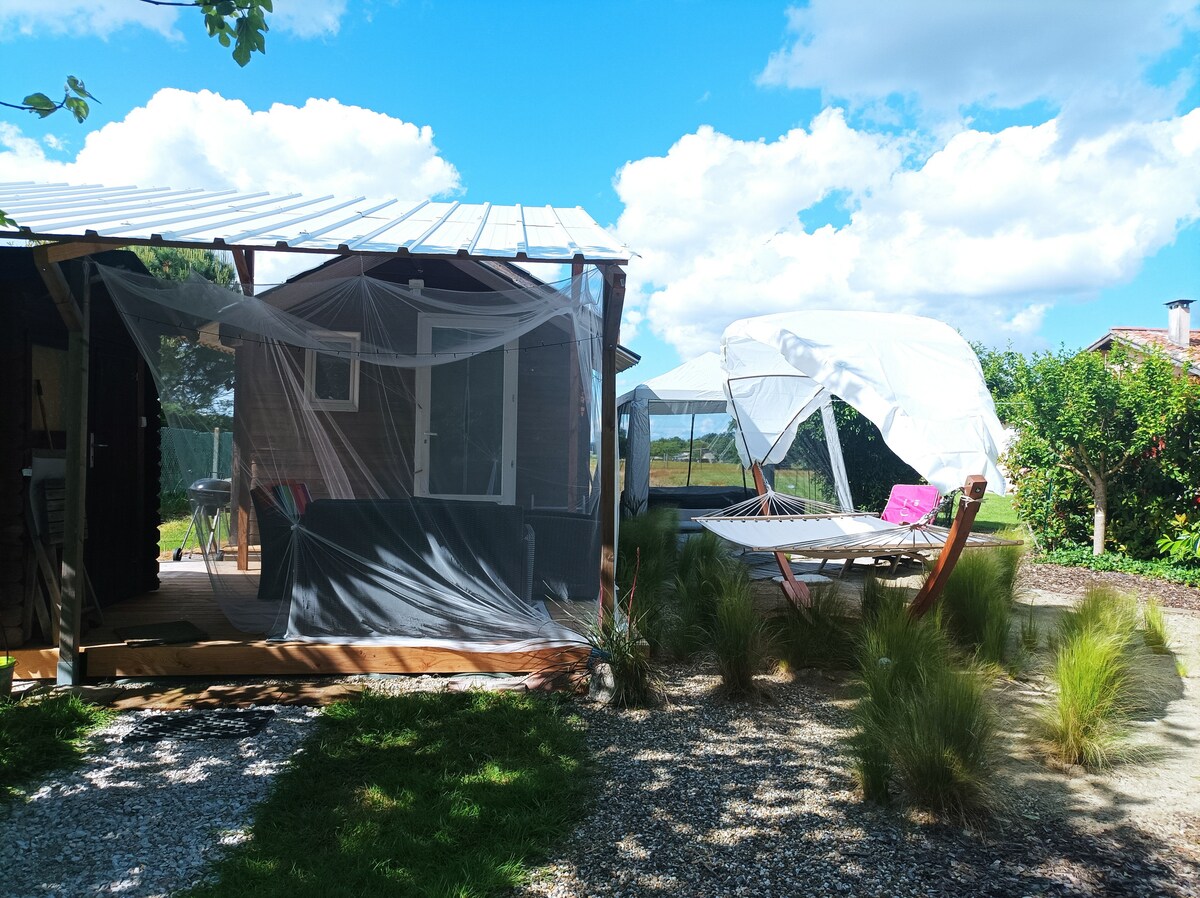 **BELLOREADE** Glamping "Mégapod" en una casa de huéspedes, entorno verde, en Ariège Pyrenees. Un encantador capullo romántico. - Cama grande de 160 cm - Aire acondicionado. - 2 terrazas con mesa de tumbonas y sillas. - Desayuno incluido - Acceso gratuito al jacuzzi (por sesión / uso de 30 minutos) - Piscina exterior en temporada. - Masaje en el sitio cercano: ciudad medieval de Mirepoix, lago Montbel, castillos cátaros Montségur y Roquefixade. Perro 5 € hasta 3 noches / 10 € +3 noches