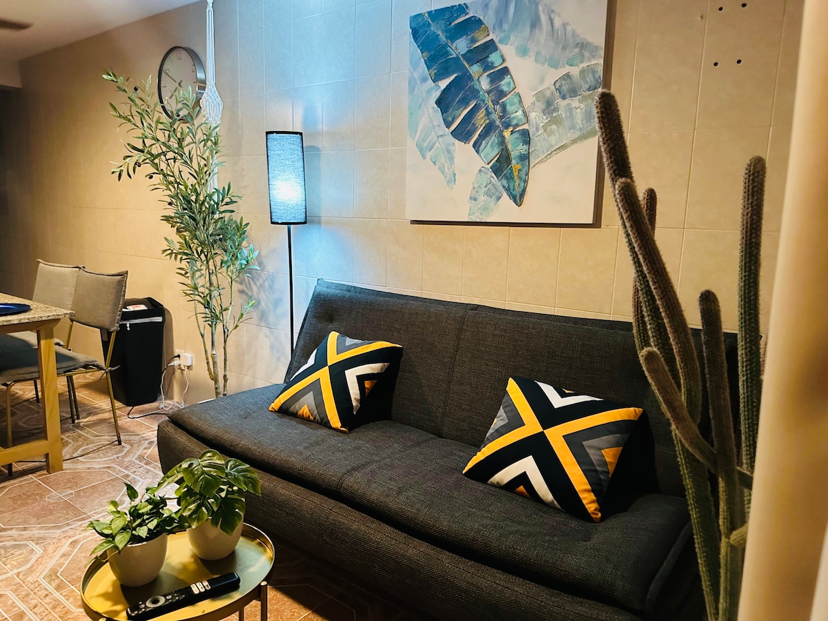 Departamento amplio y seguro. Una recámara con cama king , colchón memory foam de alta calidad, armario embutido, y baño privado. Cocina semi completa , muy equipada, refrigerador de 14 piés. Sala de estar con comedor en mármol , sofá/ cama , sillón flex , proyector de pantalla estilo “cinema en casa “. Medio baño Edifício con - Elevador - Estacionamiento - Vigilancia24 horas Amenidades: shampú, acondic. jabón de baño , jabón de mano. toallas de papel, funda de edredón, 4 almohadas.