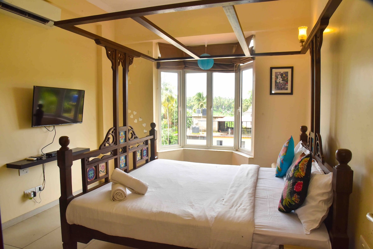 Cómodo departamento de 1 habitación | A 5 minutos a pie de la playa de Condolim
