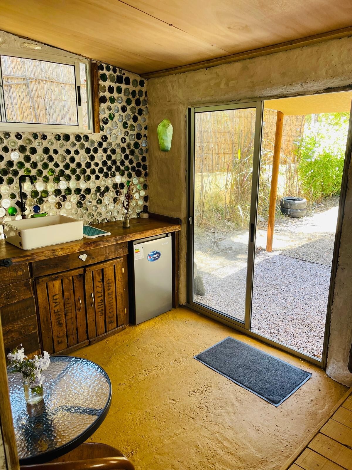 Hermosa casa pequeña e independiente en Solymar. Está a cuatro cuadras de la playa, en la bajada del restaurante El Italiano. Es un contenedor vivienda grande Tiene un patio privado con sillas, comedor exterior, parrillero, y se puede entrar vehículo. Intentamos que sea lo más agradable y cómoda posible por lo que estamos abiertos a sugerencias o peticiones. Tiene cama matrimonial en el dormitorio y un sofá cama americano de dos plazas. También hay un colchón inflable por si lo prefieren