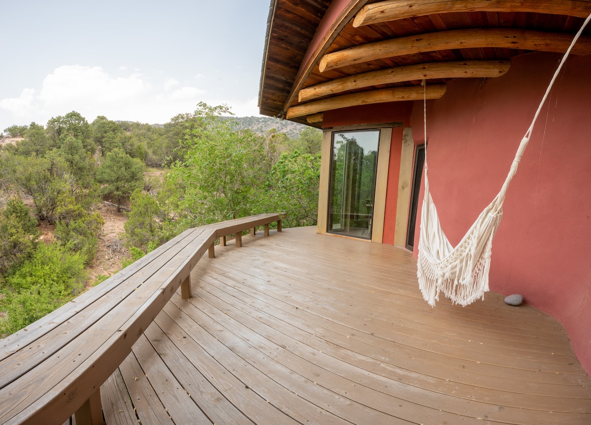 A cozy cottage nestled amongst the ponderosa & piñon pines, near Abiquiu. This mountain retreat offers expansive views from windows and deck space. The property borders on Santa Fe National Forest and Poleo Creek is a short hike away. Relax in this special getaway...read, meditate, nap....The treehouse is an architectural gem. Think tiny living with intelligent design. 30 minute drive from beautiful Abiquiu Lake & Georgia O'Keefe country. Outdoor adventures await.