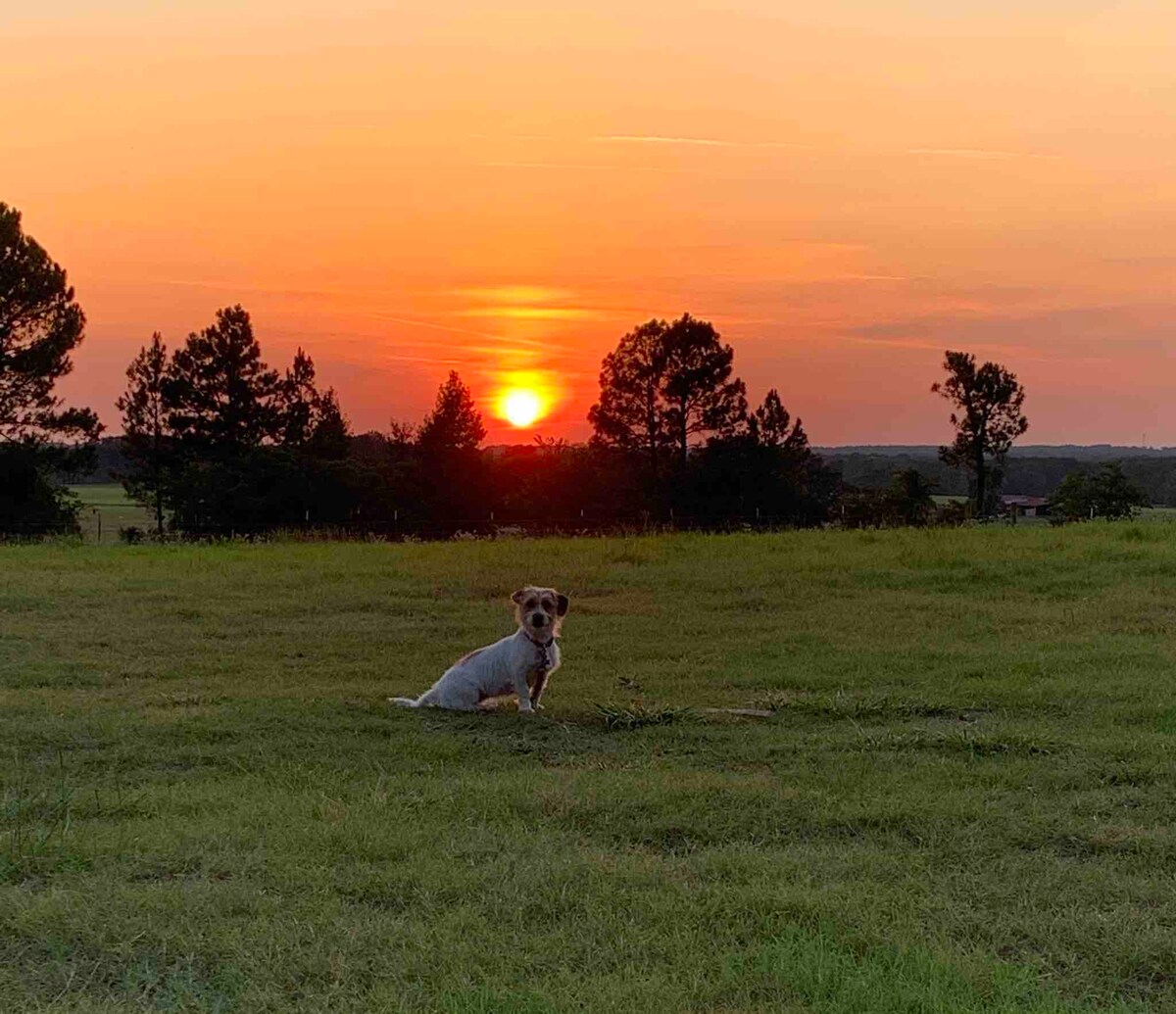 Pintoresca casa de campo enclavada entre tres acres de imponentes árboles. Cuenta con una cocina grande y recientemente renovada, un dormitorio espacioso y mucho espacio para vivir al aire libre, incluido un jacuzzi y un pozo de fuego. Esta cabaña en el bosque ofrece la privacidad y la belleza del este de Texas que buscas, pero está a pocos minutos de numerosos restaurantes y atracciones con fácil acceso a la Interestatal 20 y la Toll 49. Retírate a la gran terraza y contempla las estrellas, o coge una manta y disfruta de s'mores junto al fuego.