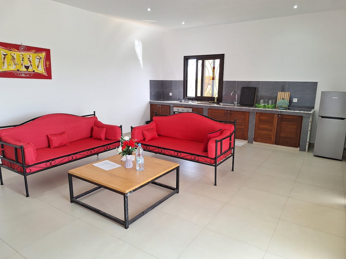 Acogedor 🏖️ apartamento a 100 m de la playa – Cap Skirring Bienvenido a su refugio de paz en el corazón de Cap Randoulene. Este apartamento totalmente equipado es perfecto para una pareja, con posibilidad de alojar a un niño. Disfruta de las comodidades modernas en un entorno tropical a solo 2 minutos a pie de la playa.