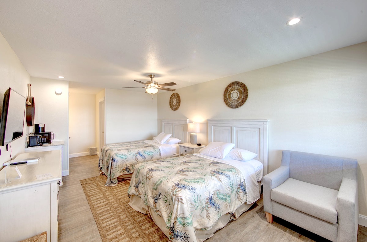 Habitación doble con dos camas tamaño queen y vistas al mar