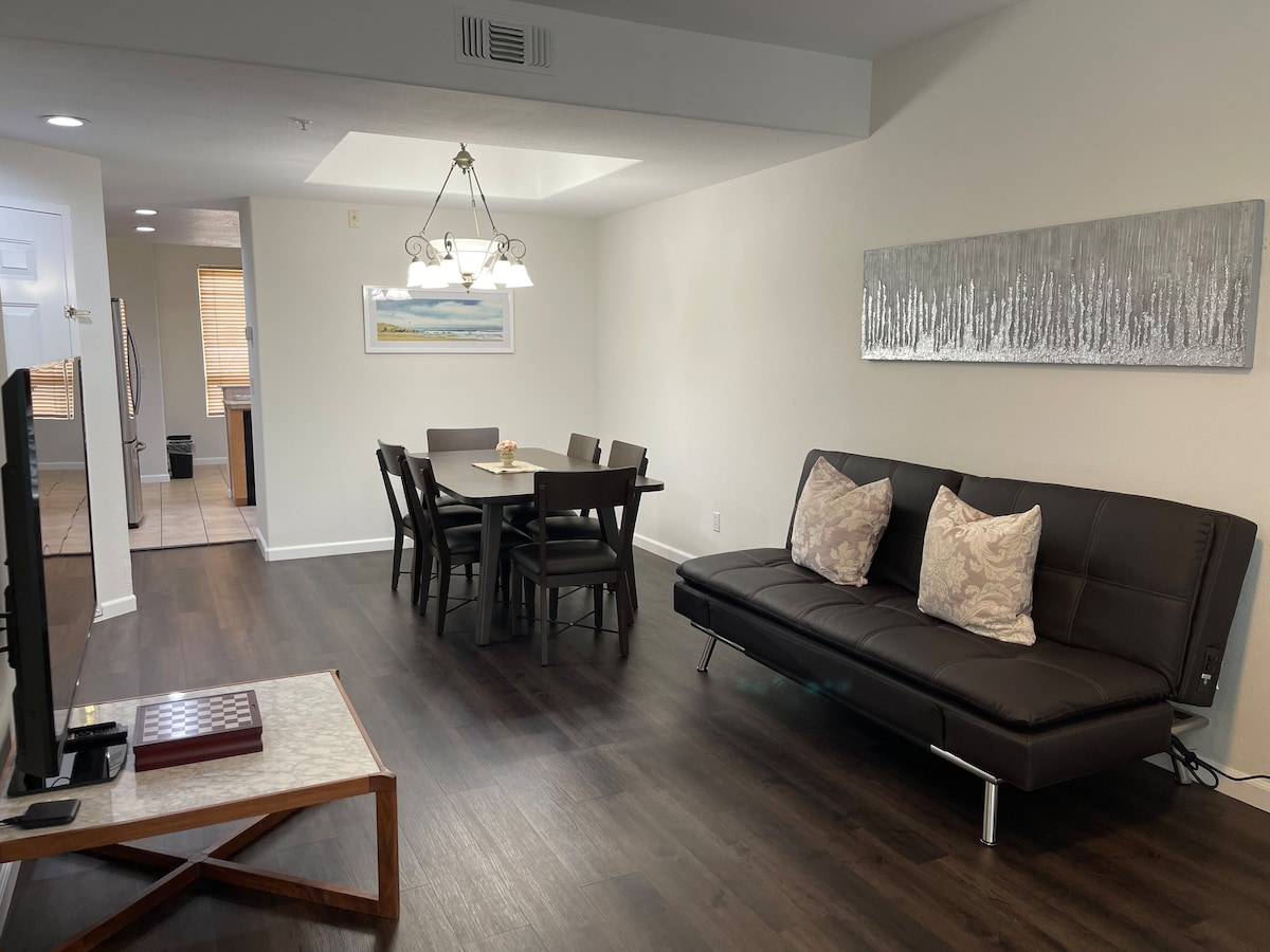 Cómodo apartamento en el corazón de Capitola Village. Aparcamiento cubierto reservado en el hotel para dos coches. Dos dormitorios con 1,75 baños. Ofrecemos sábanas, toallas, cocina totalmente equipada, lavavajillas, lavadora/secadora, reproductor de DVD, televisión por cable, wifi, cafetera, etc. La cocina está fechada con azulejos blancos de los 80, limpia y totalmente surtida. Esta es nuestra casa de vacaciones familiares, la mantenemos en perfecto estado. Descuento disponible para estancias de 30 días para octubre, noviembre, enero, febrero, marzo, abril y mayo. Ponte en contacto con nosotros para obtener detalles sobre las tarifas. Gracias.