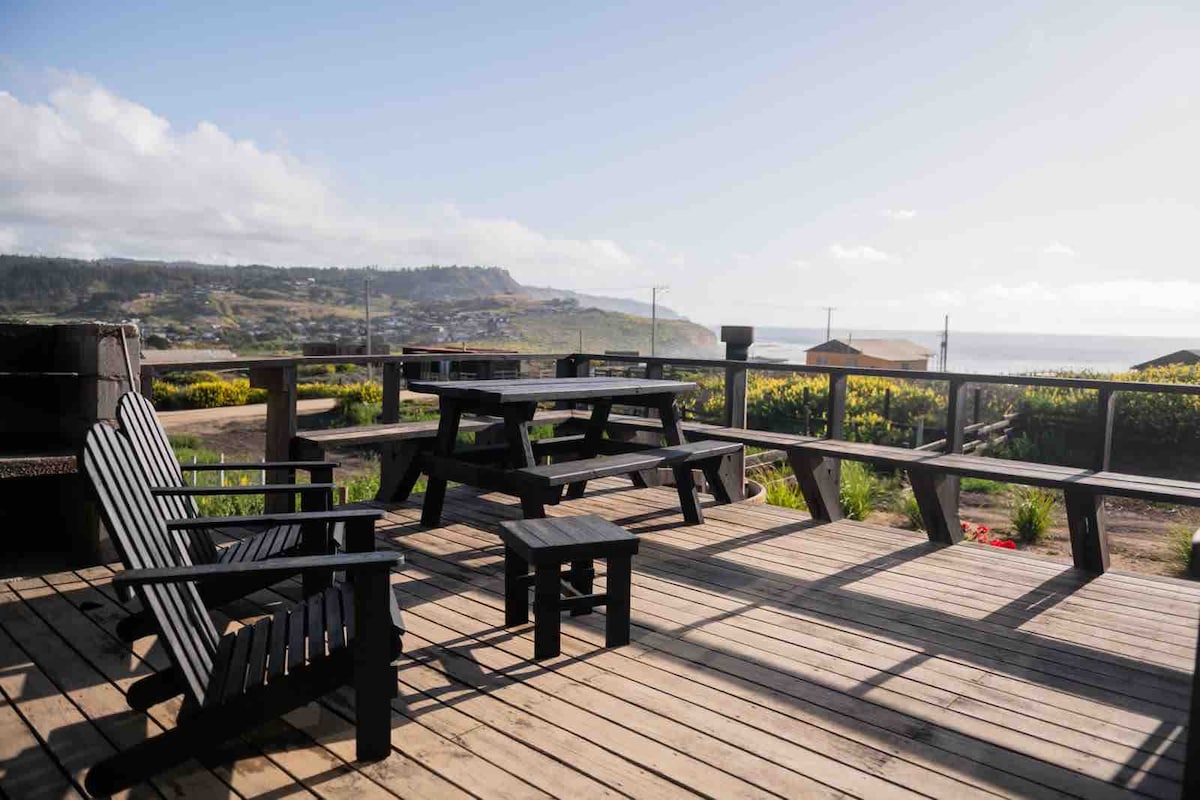 Quédate en una casa con una increíble vista al mar, una propuesta y arquitectura diferentes, todas las comodidades necesarias y una privacidad inigualable. Estarás a minutos de la playa, del río y la desembocadura. Tendrás a tu disposición parrilla, juegos de mesa, cafetera y calefacción electrica. Somos Pet friendly con algunas excepciones. Además, tenemos servicios extra de pago como jacuzzi, telescopio, bienvenida, bicicletas, kayak y SUP. Amplio estacionamiento y camino apto todo vehiculo