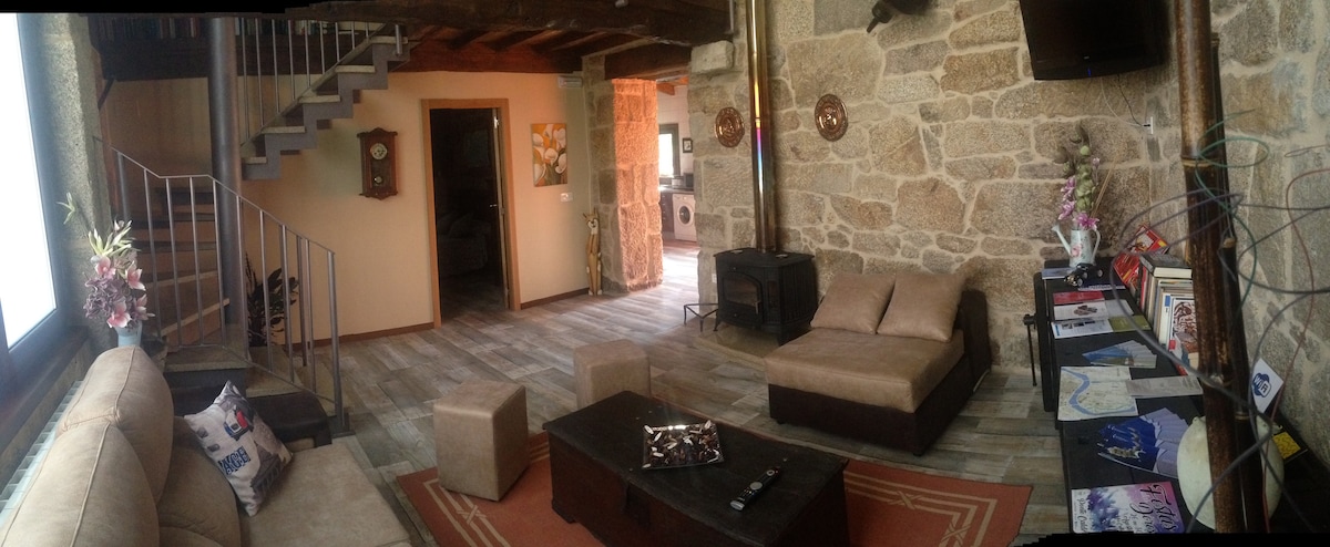 Preciosa casa rústica con piscina en la aldea de Mirón, restaurada con nuestras propias manos, de 150 metros cuadrados y 1000 metros de terreno con aparcamiento cubierto para dos coches, a 15 min de Pontevedra y a 20 min de las playas . Cuenta con todas la comodidades actuales en un entorno tranquilo con vistas a la garganta del Río Almofrei. En un radio de 10 km cuenta con diferentes lugares de interés y singular belleza de los Concellos de Cotobade,Sotomaior,A lama y Pontecaldelas.