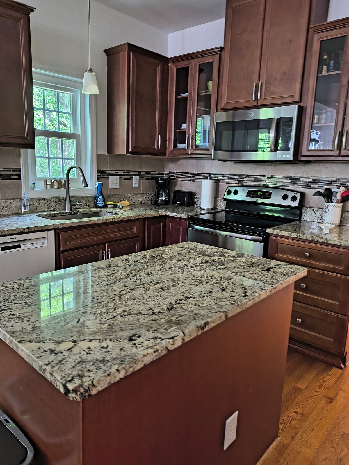 Mi casita de 1906 es una granja completamente restaurada que mis bisabuelos trajeron a nuestra propiedad durante la depresión. Nuestra casa de huéspedes está escondida detrás de la casa principal donde vivimos. Tiene tablas de madera originales en la sala de estar abierta y cocina americana con hermosos suelos de pino en toda la casa de 700 pies cuadrados. Hay un dormitorio separado con techos altos de 12 pies y mucha luz solar natural en todas partes. Sabemos que te sentirás bien desde el momento en que entres por la puerta.