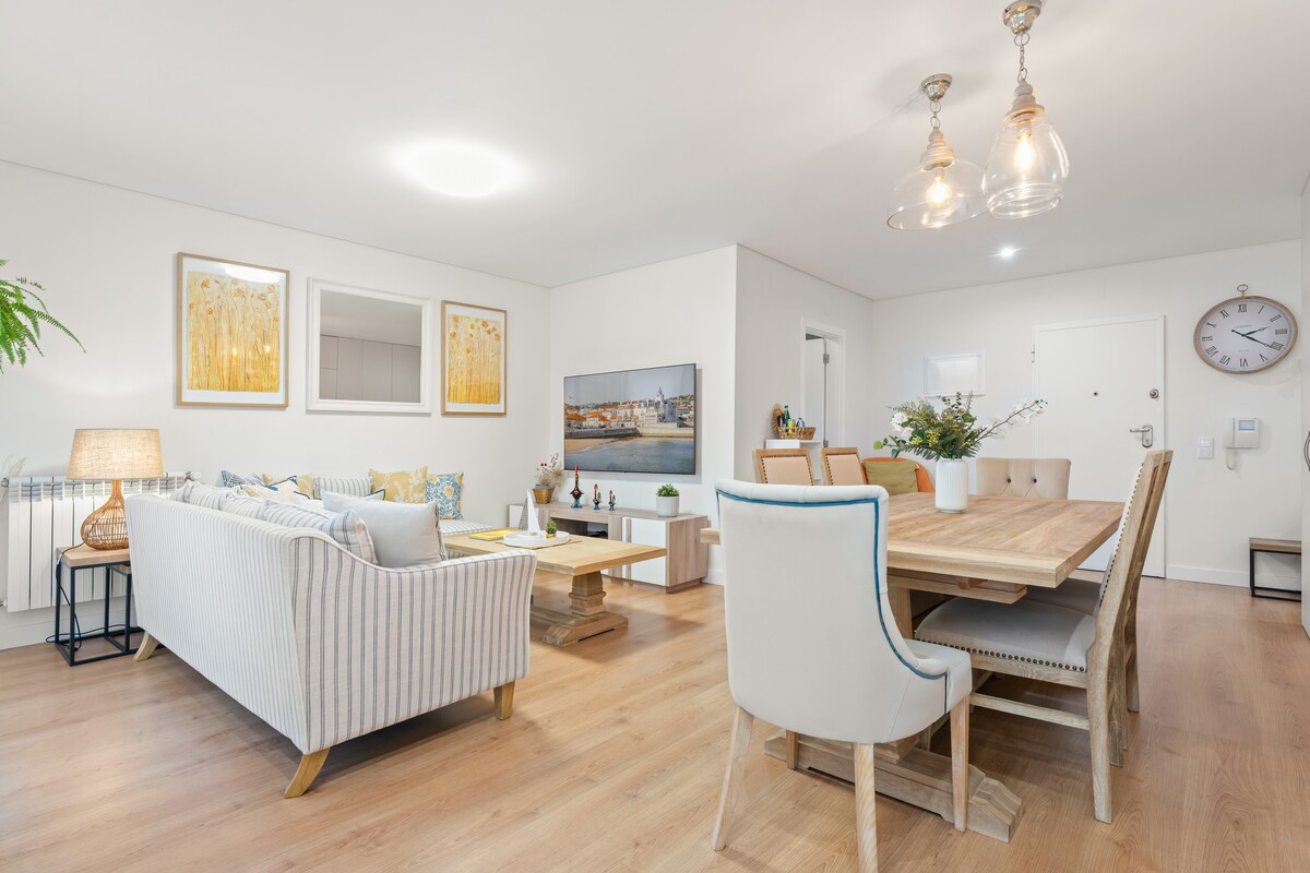 Apartamento privado y confortable de un dormitorio con aparcamiento gratuito. Despiértate con vistas al océano Atlántico y disfruta de la impresionante puesta de sol desde el salón de espacio abierto y la cocina con impresionantes vistas a las montañas de Sintra. Cerca de todos los servicios, incluyendo una farmacia y supermercados a 2 minutos a pie (también tienen servicios de comida para llevar). A 5/10 minutos a pie de la costa, parque, centro histórico de Cascais, restaurantes y playas. A 20 minutos en coche de Sintra y Lisboa.