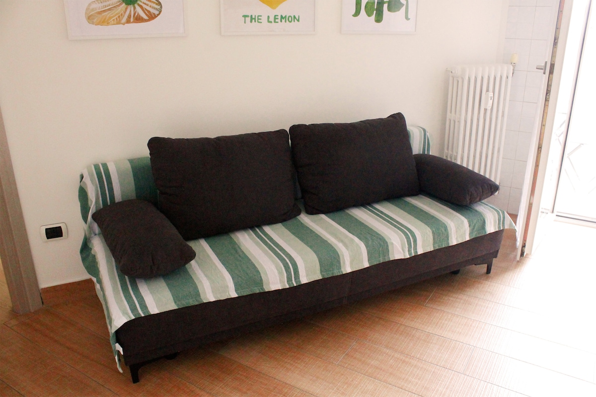 Apartamento moderno recién amueblado y estamos esperando a nuestros primeros huéspedes (por eso no tenemos comentarios). El alojamiento consta de una habitación doble, un baño, una gran sala de estar con sofá cama, una cocina equipada con todo lo necesario para una cena en total privacidad. El balcón privado y la terraza común son lugares para relajarse. Frente a la propiedad hay estacionamiento gratuito y una parada de autobús. Las sábanas, las toallas y el wifi están incluidos en el precio. Espero verte pronto.