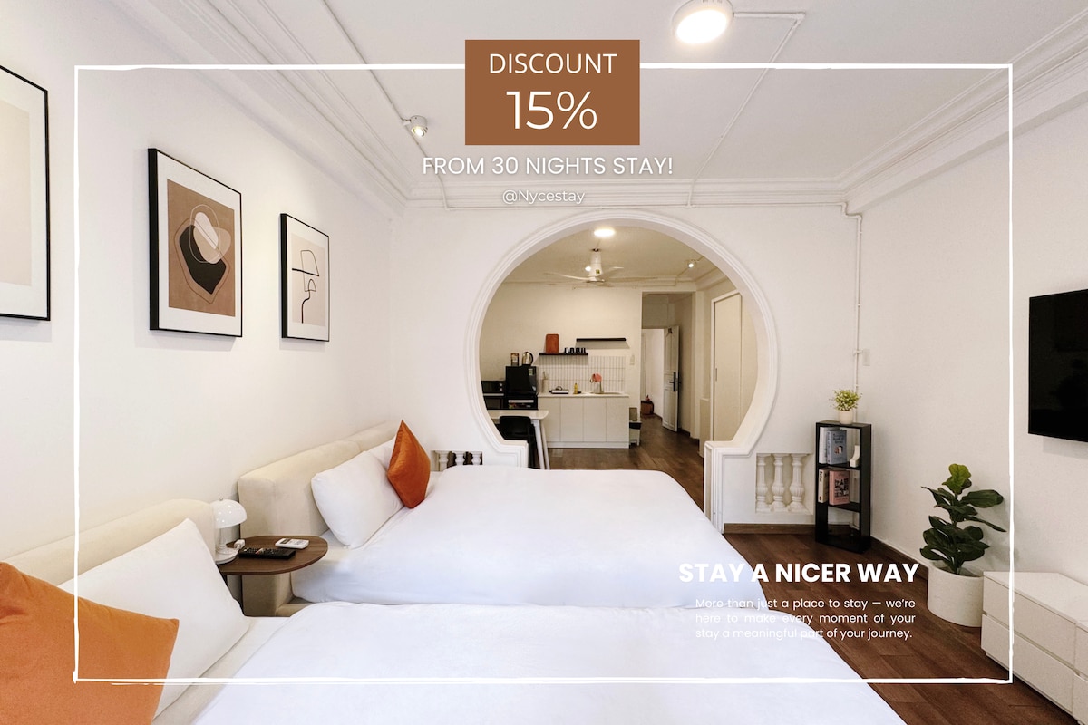 Disfruta de la energía vibrante de Saigón mientras te relajas en un estudio de retiro tranquilo con un gran balcón privado y un espacio de trabajo dedicado. Ubicación inmejorable: a 5 minutos a pie de Bui Vien Walking Street, a poca distancia a pie del mercado Ben Thanh, la Ópera HCM y la Catedral de Notre Dame de Saigón. Ventajas exclusivas ⭐️WI-FI y Netflix gratis ⭐️REGALO de bienvenida gratuito Lavadora privada⭐️ GRATIS y secadora en el edificio ⭐️CHAMPÚ y jabón corporal gratuitos Toallas adicionales⭐️ GRATIS (solicitud anticipada) Elementos básicos de despensa y utensilios de cocina⭐️ GRATUITOS