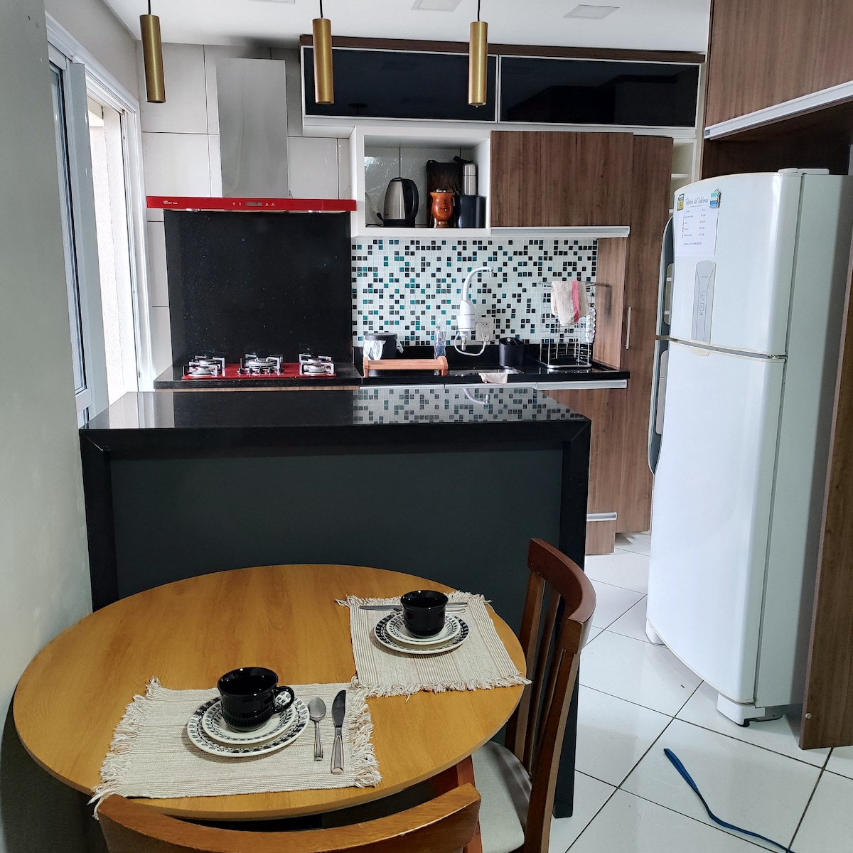 Apartamento nuevo y amueblado en Canela. Ideal para parejas con hasta dos hijos o para personas que viajan solas. Tiene 1 dormitorio con una cama doble y aire acondicionado, una acogedora sala de estar con un sofá cama para dos personas con aire acondicionado y calefacción, una cocina equipada, una parrilla para barbacoa, wifi y una TV. Ubicación tranquila y bien situada, cerca del centro de la ciudad, restaurantes y atracciones de la montaña. Perfecto para descansar o disfrutar de Canela y Gramado con comodidad.