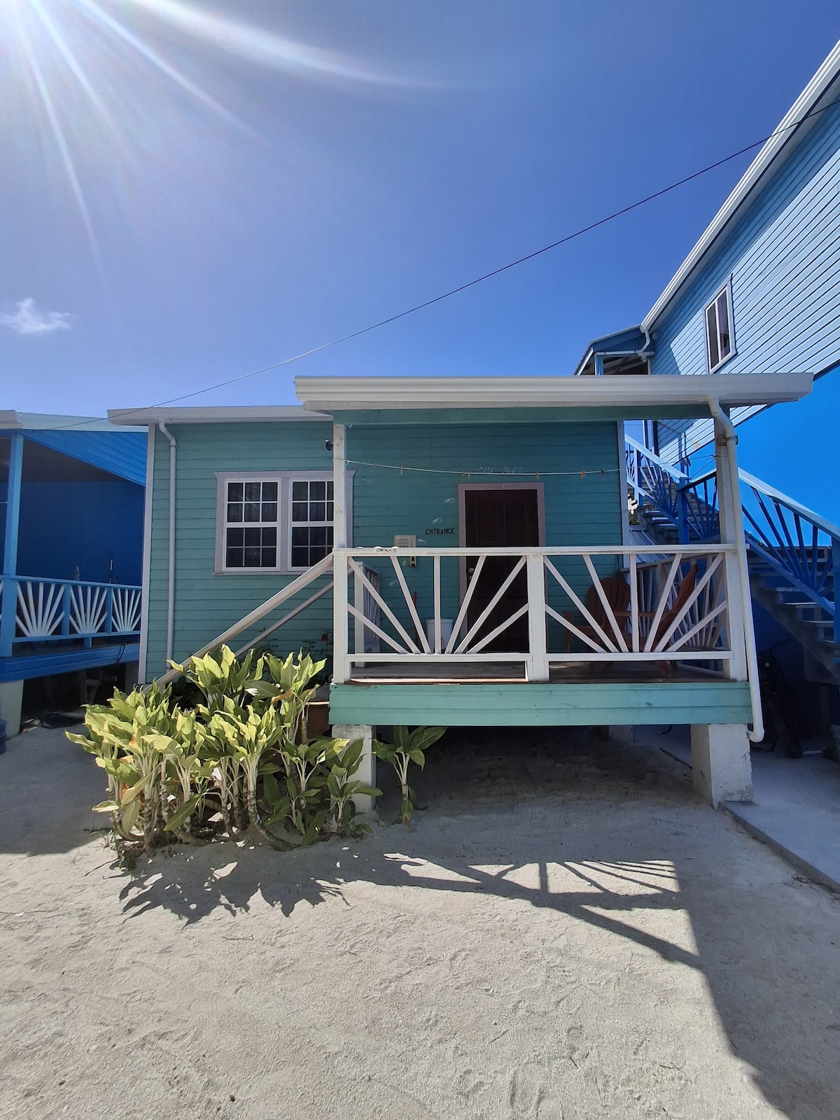 Disfruta del amanecer caribeño sobre la barrera de coral de Belice y ponlo sobre la bahía turquesa todos los días desde cuatro porches privados. Camina 150 pies en cualquier dirección para nadar, bucear, tomar el sol o pescar en los lados de barlovento o sotavento de Caye Caulker o en nuestro muelle privado compartido. Disfruta de un partido de ping pong o asa tu pescado en la intimidad de tu patio tropical. Recorre las calles de arena con tus propias bicicletas. Prepara una comida isleña en tu cocina totalmente equipada. Repleto de comodidades. Servicio completo de gestión.