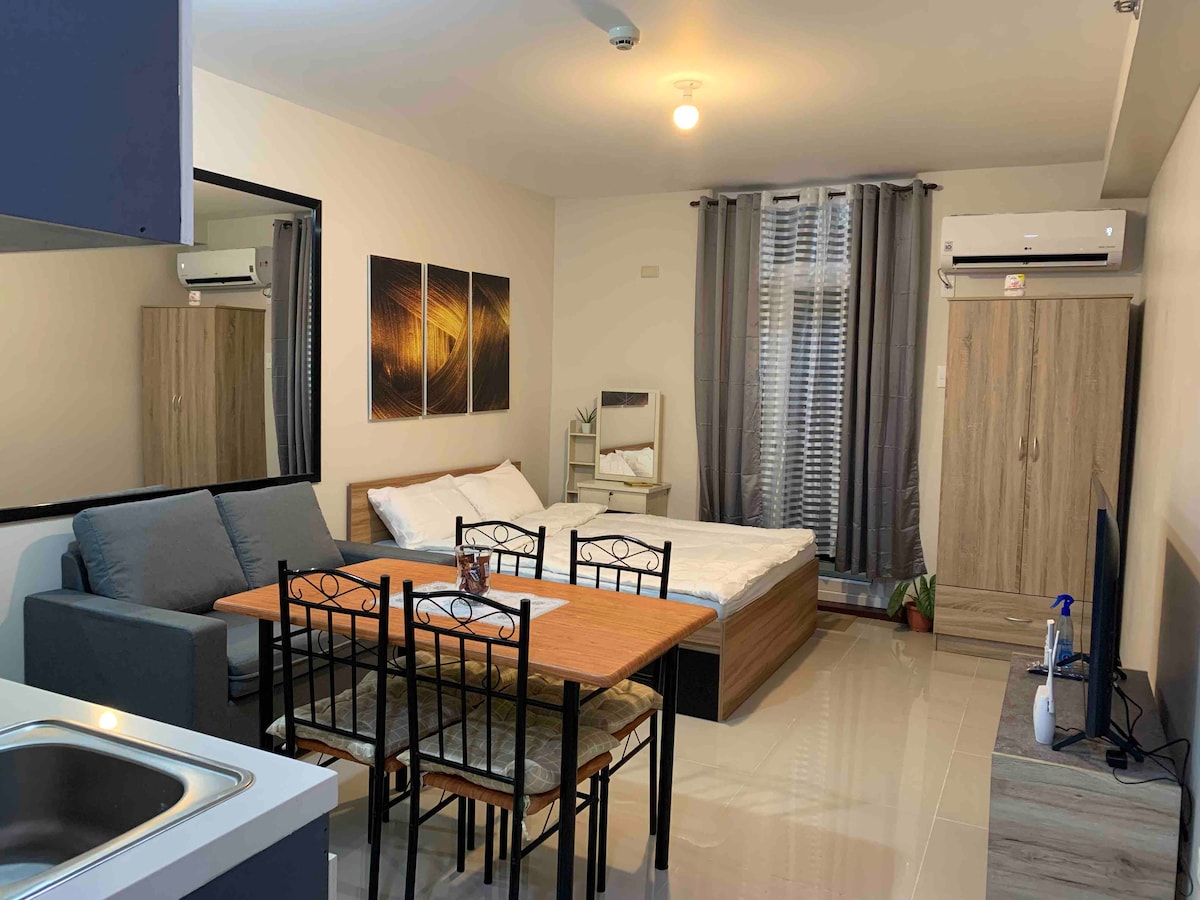 Mabolo está a poca distancia a pie de los centros comerciales Ayala y SM City. Lugar perfecto para una estancia corta en Cebú. La comunidad de apartamentos tiene todo lo que necesitas. Lavadora de pago dentro del complejo. Dentro de la comunidad hay cafeterías, farmacias y tiendas de comestibles. En la unidad hay dos camas individuales y una cama de matrimonio. Ideal para 2-3 personas. El apartamento tiene lo siguiente: Microondas, mininevera, wifi, teléfono, TV inteligente de 54 pulgadas, artículos de aseo, vajilla, gimnasio, piscina, secador de pelo y mostrador de recepción. Fibra de 50 Mbps con Netflix.