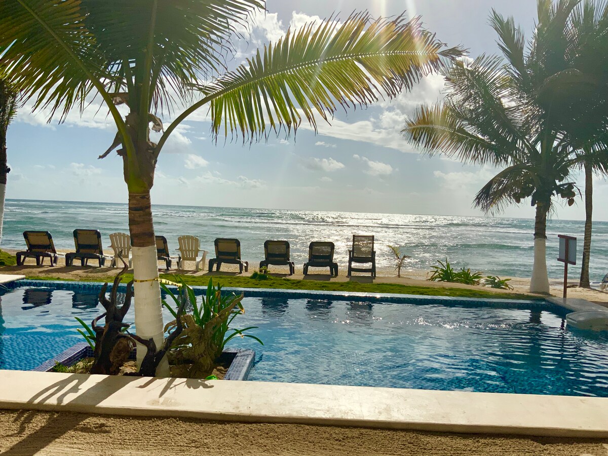 Frente a la playa, vistas al mar, piscina, capacidad para 1-4 personas Akumal MX