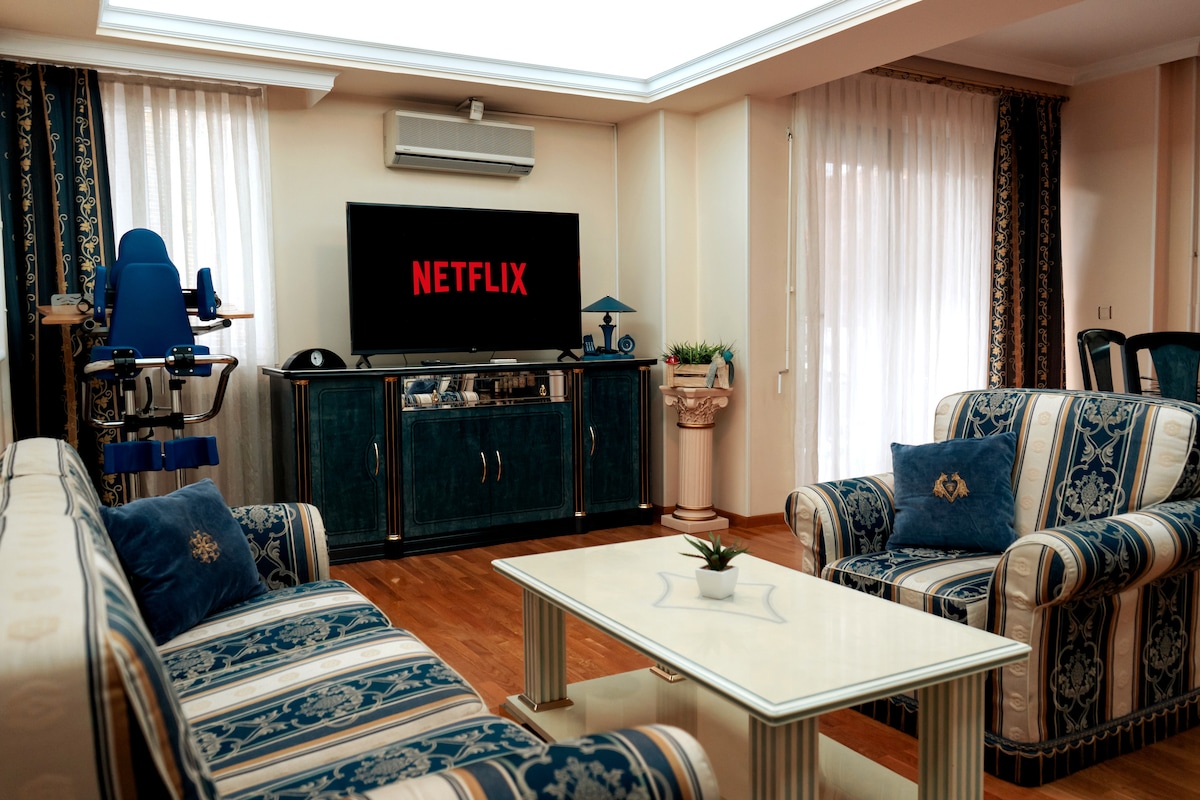 El apartamento está ubicado en el bulevar principal de Skopje, cerca de todas las atracciones principales. El interior es realmente moderno y lujoso, con iluminación y decoraciones de alta gama. Tiene un dormitorio y una sala de estar con un gran sofá cama tamaño king. Ambas habitaciones tienen televisores inteligentes y el apartamento está equipado con todo lo necesario para que te sientas como en casa.