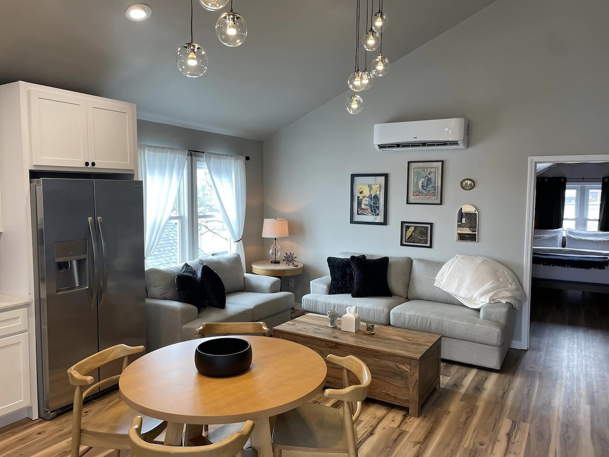 ¡La oficina de Doc de 1905 se transformó en un cómodo apartamento de vacaciones! ¡Camina alrededor de nuestra pintoresca ciudad llena de encantadora nostalgia! Visita tiendas, come comida deliciosa, observa sopladores de vidrio, visita nuestra famosa destilería, da un paseo por el dique o disfruta de una película justo al lado. ¡Todo a 3 minutos a pie de tu suite! ¡Con encanto histórico y comodidades modernas, esta suite cuenta con todo lo que necesitas para una gran escapada! ¡Somos tu destino de escapada!
