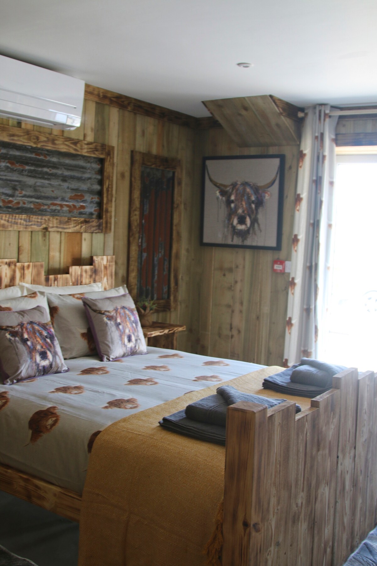 El Moo-Tel consta de 11 habitaciones temáticas de vacas y una sala de estar común, ¡tiene todo lo necesario para la escapada perfecta! El Moo-Tel está situado muy cerca del Moody Cow, nuestro bistró, la tienda de la granja y el Moody Calf Play Barn. Situado a solo 5 minutos en coche de la bonita ciudad portuaria de Aberaeron y a 10 minutos en coche de New Quay, con sus gloriosas playas de arena, deportes acuáticos y excursiones en barco para avistar delfines. El desayuno se puede reservar con antelación a la llegada por 9 £ por adulto y 5 £ por niño.