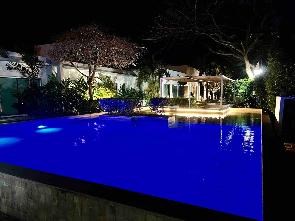 Majestic Sands! Come relax with the whole family at this piece of paradise.located in a private beach community in Costa Esmeralda, San Carlos. Few minutes from the Pan-American highway and a few minutes from other local beaches such as Gorgona, and Coronado. It is a 5-minute walk to our beach, or if you prefer you can go by car. The home includes an amazing saltwater pool and hot tub with hammocks with views of amazing palm trees.Uninterruptible power with Smart Home Energy Management Systems.