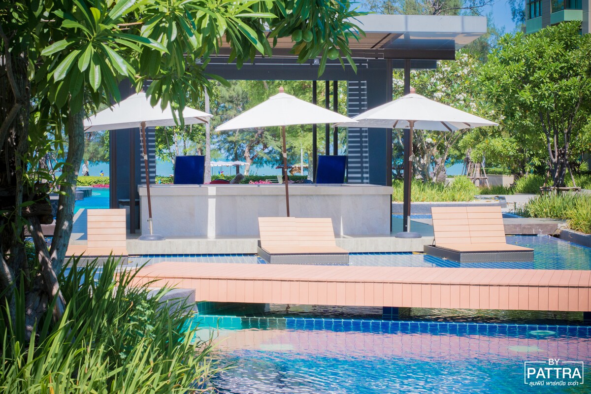 Disfruta de unas tranquilas vacaciones privadas frente a la playa con espacios en el último piso de 105 metros cuadrados. - Relájate con espectaculares vistas al mar en Cha am, Tailandia. Las comodidades incluyen una playa privada, 2 piscinas públicas, sauna, oficina principal, lavandería, servicios de limpieza, masaje TAILANDÉS, wifi, seguridad las 24 horas, gimnasio y un hermoso jardín. A 20 km de Hua Hin y a 2,5 horas en coche de Bangkok. Opciones perfectas para parejas, familias o grupos de amigos que buscan una escapada relajante.👍🏻