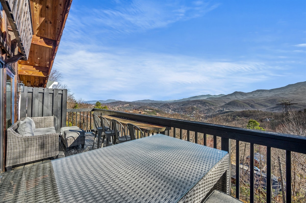 Calificación promedio: 5 de 5, 9 reseñas¡Nuevo! Piscina/Vistas a la montaña/Jacuzzi/Fogata/Sauna/Sala de juegos