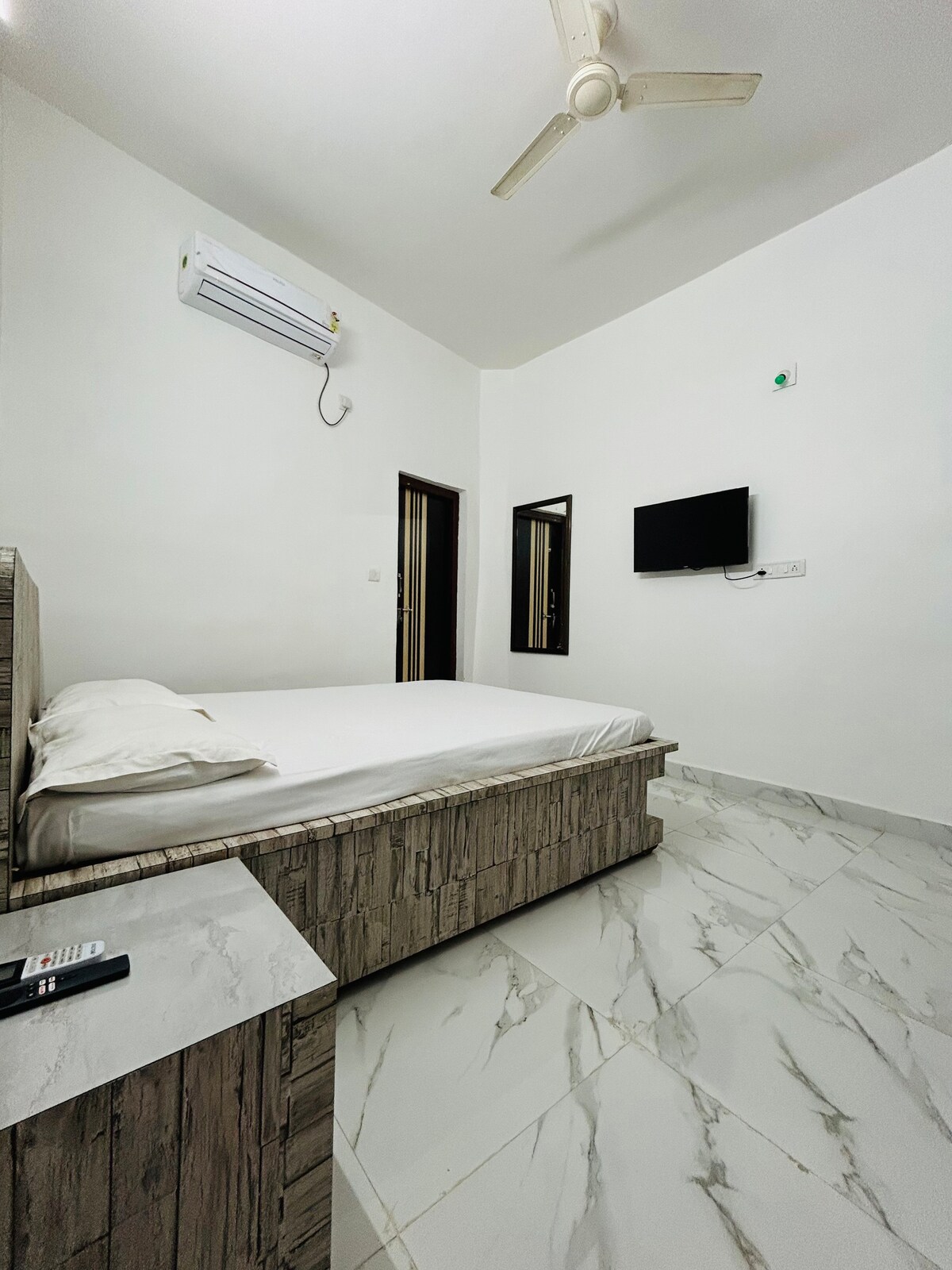 This newly renovated retreat offers modern comfort with serene hill-station vibes. Featuring deluxe Jaguar fittings in the three attached washrooms, French windows and AC in every room. The central location near the main lake and rose garden adds convenience, while a unique adjoining rock enhances its charm. A fully equipped kitchen with fridge, gas, and utensils, plus a separate dining area, ensures home-like convenience. CCTV security and a cooperative host make it a peaceful, worry-free stay.