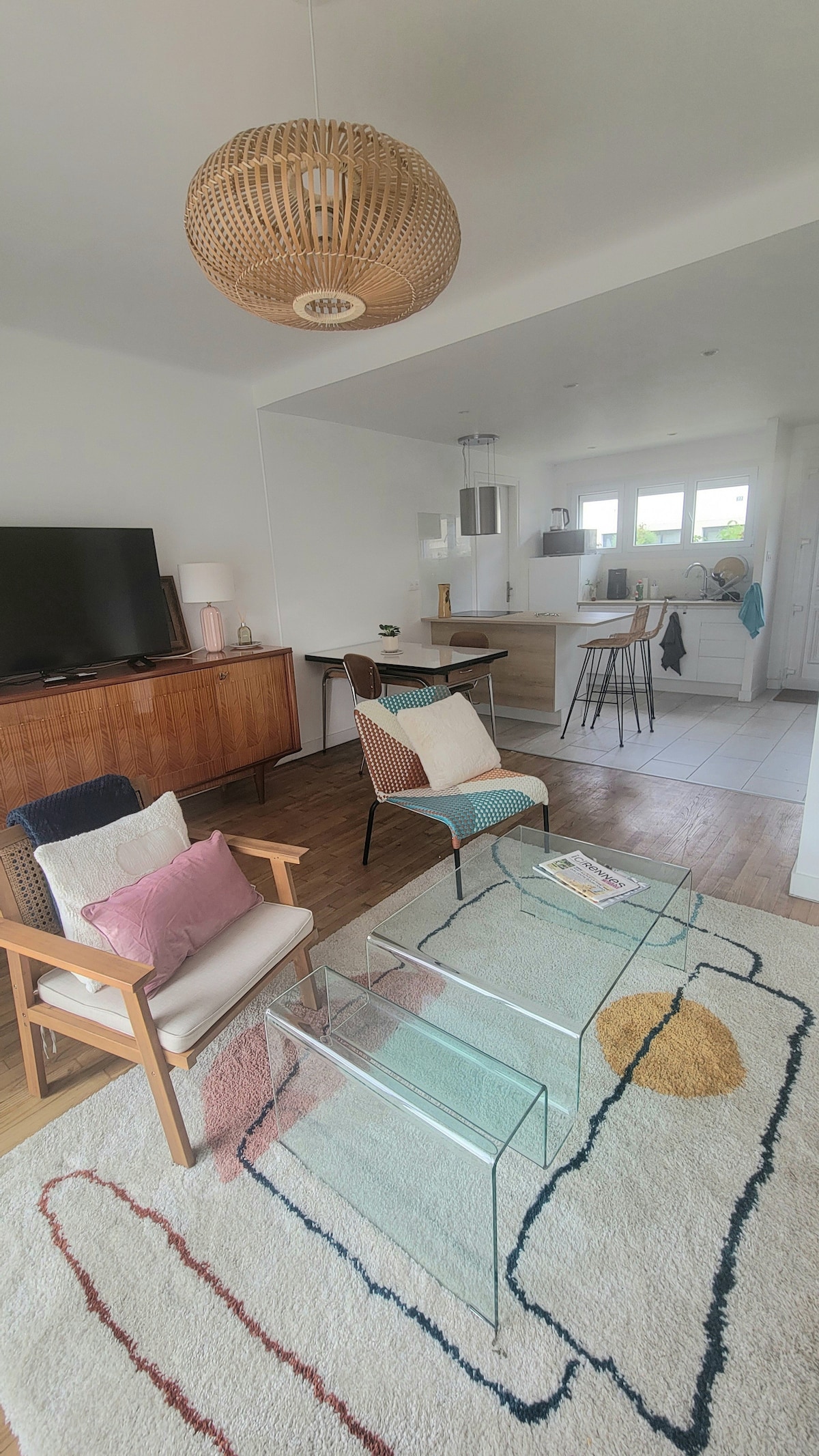 Rodeado de vegetación, venga a descubrir en la planta baja de una casa de arquitecto un apartamento de 42 m² que cuenta con una gran terraza con su jardín privado orientado al SUR sin vecinos, pero cerca de la carretera de circunvalación (2 minutos) y a 10 minutos del centro de la ciudad de Rennes. Una habitación con una cama queen size (160/200) con armario. Sala de estar: mesa con extensión, sala de TV con 2 sofás, uno de los cuales es un sofá cama con un colchón de verdad. Una caja de llaves le permitirá llegar y salir de forma autónoma.