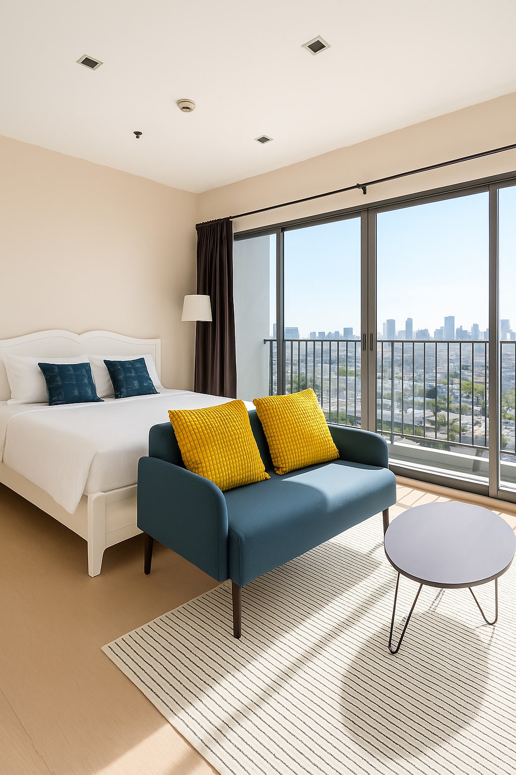January Promotion | 10+ Years Trusted Host January special rates available. Welcome to this stylish 1-bedroom condo at Sukhumvit 42, just a 5-minute walk to BTS Ekkamai. The location is unbeatable — surrounded by Gateway Ekkamai Mall, Japanese restaurants, cafés, supermarkets, cinemas, and Bangkok’s favorite lifestyle spots. The unit features a bright living room, cozy bedroom, full kitchen, and large windows, making it perfect for couples, business travelers, and long-stay guests.