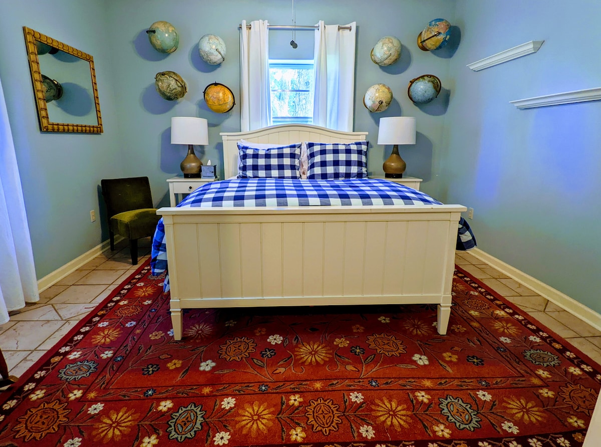 The Book & Table Inn se encuentra en un edificio restaurado de 1890 en el centro aburguesado de Valdosta, Georgia, en la esquina de Patterson y el histórico Bennie's Alley, el lugar más fotografiado de Georgia del Sur. La habitación de septiembre es nuestra habitación más grande en el Inn con una ventana y una puerta que se abre al patio. El techo de 12 pies hace que la habitación parezca aún más grande. Hay un armario grande con una mesa plegable para proporcionar un espacio de trabajo.