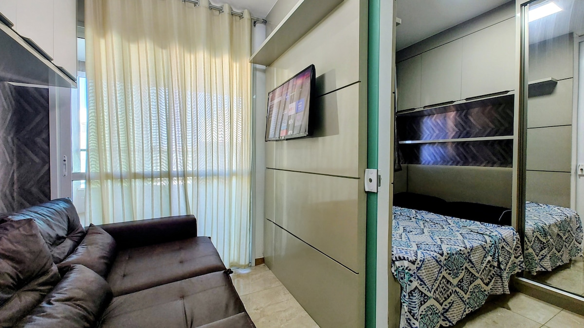 ¡Nuevo estudio inteligente y bien decorado en la playa de la Costa Azul, a 15 minutos del circuito de Carnaval, en la playa de Barra! Con cama doble, smart TV, ALEXA, aire acondicionado split, cocina completa. Condominio con conserjería las 24 horas, gimnasio, piscina, coworking y lavandería (se paga por separado). Nota: El estudio ofrece 1 plaza de aparcamiento rotatorio.