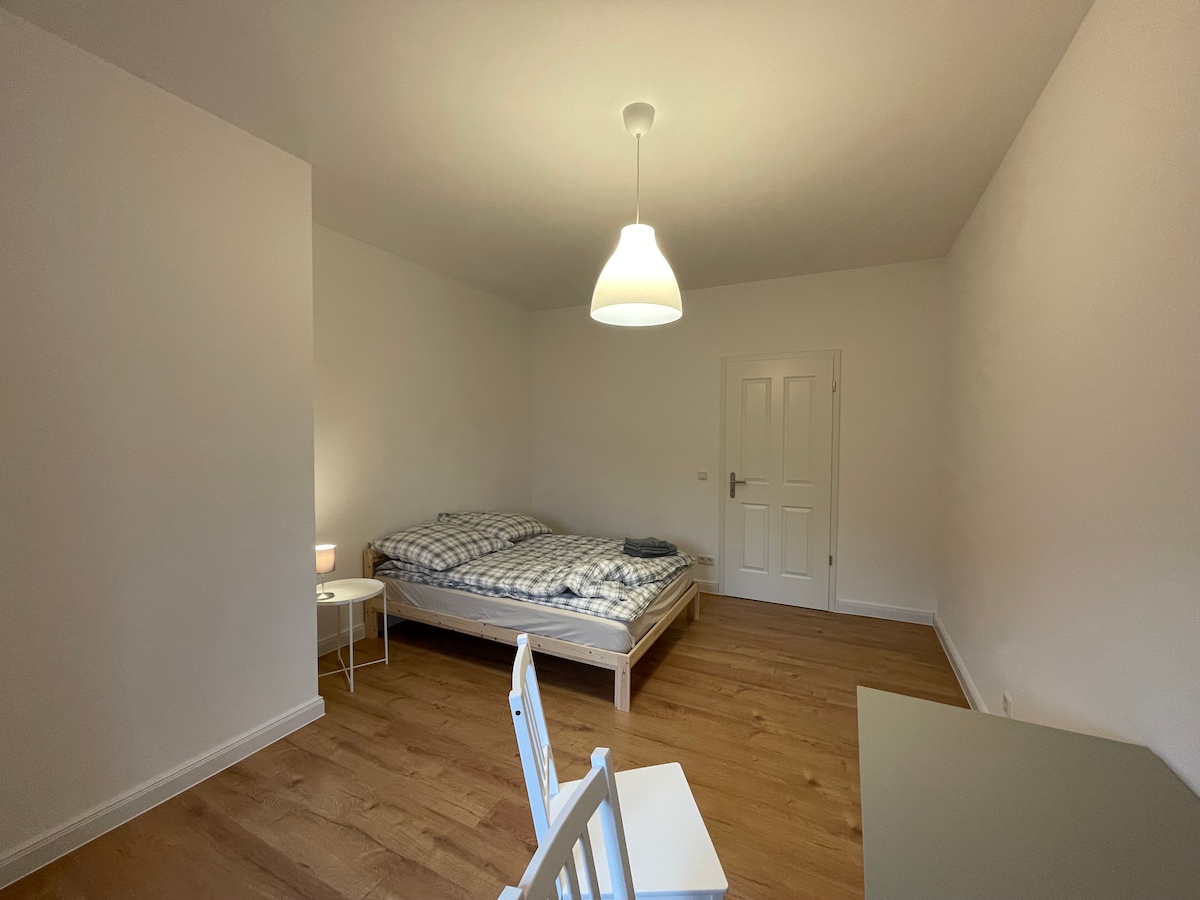 Apartamento individual en nuestra casa independiente. Todas las ventanas con pliegues para la privacidad. Asientos al aire libre en la terraza privada. El apartamento está ubicado en la planta baja y se puede llegar sin subir escaleras. El departamento está muy cerca (a 2 minutos en auto) de la autopista A4. El gran centro comercial Chemnitz Center está a solo 3 minutos. La parada de la línea de autobús 21 está a solo 2 minutos caminando, con la que se puede llegar al centro de la ciudad y a la estación de tren principal.