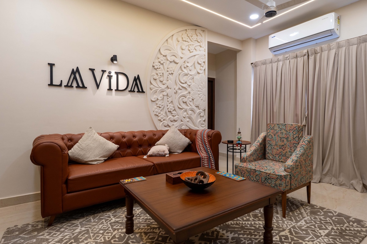 Enjoy a spacious, stylish 2BHK retreat just minutes from the airport-perfect for travelers, couples, and small families. Unwind on your private balcony with calming wetland views and relax in two AC bedrooms with cozy queen beds. The living room offers a comfy couch, smart TV, and a cute photo corner. High-speed WiFi and ample parking add to the ease and comfort of your stay. Crafted for slow mornings, soft light and those "I could stay forever" moments. Welcome to The Veyora journey.