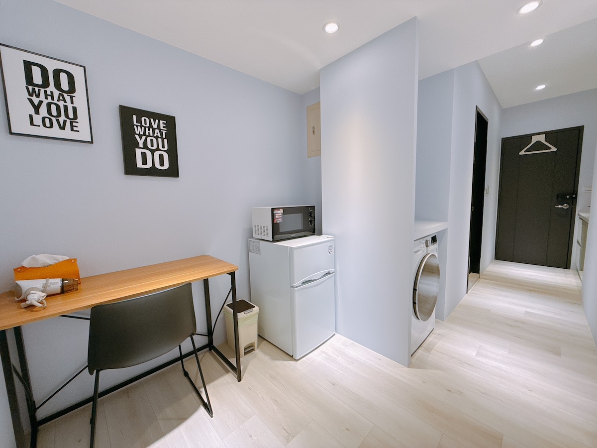 los gansos están ubicados en el carril en el centro de la ciudad, por lo que el transporte es conveniente y tranquilo.A poca distancia a pie de MRT Ancient Pavilion, Dongmen y Chiang Kai-shek Memorial Hall Station, respectivamente, la línea Tamsui Xiangshan y la línea Gongshan New Store, así como el Nanmen Market, la calle Yongkang y el Banyan Chu Lian Living Circle, que no se puede perder.Hay muchos lugares interesantes y cafeterías encantadoras en la encantadora zona de Dai 'an, ¡y se puede encontrar información turística en la pared del libro en la habitación! Aunque el interior está mini pero completamente amueblado, puedes tomar café, sol codicioso sin sol, proyector de cine en casa, diferentes alturas de almohadas, edredones diferentes, mantas de almohada cómodas y suaves, y mucho más. El apartamento es seguro y tiene un cuidador durante el día entre semana.Ubicado en el tercer piso del apartamento con ascensor.Hay una fuente para beber, lavadora y trastero en las instalaciones comunes del sótano, y se puede proporcionar almacenamiento de equipaje de forma gratuita. [Space Facilities] El apartamento tiene una suite de unos 25 metros cuadrados, solo hay un espacio, no hay compartimento, cómodo para dos personas, las familias con niños son bienvenidas, cuatro adultos estarán abarrotados. Espacio principal: Sofá cama doble, revistas y libros de viajes, proyector Cama tamaño queen, escritorio, perchero Baño: Sin separación húmeda y seca (la ducha no es un compartimento separado), toallas de baño de algodón, toallas, jabón de manos, gel de ducha, champú, secador de pelo Cocina abierta: nevera de doble puerta, microondas, horno pequeño, taza de platos para cuatro, vajilla básica, olla rápida, hervidor de agua fría, cafetera en cápsulas, prensa francesa, cápsulas de café, bolsas de té, fideos