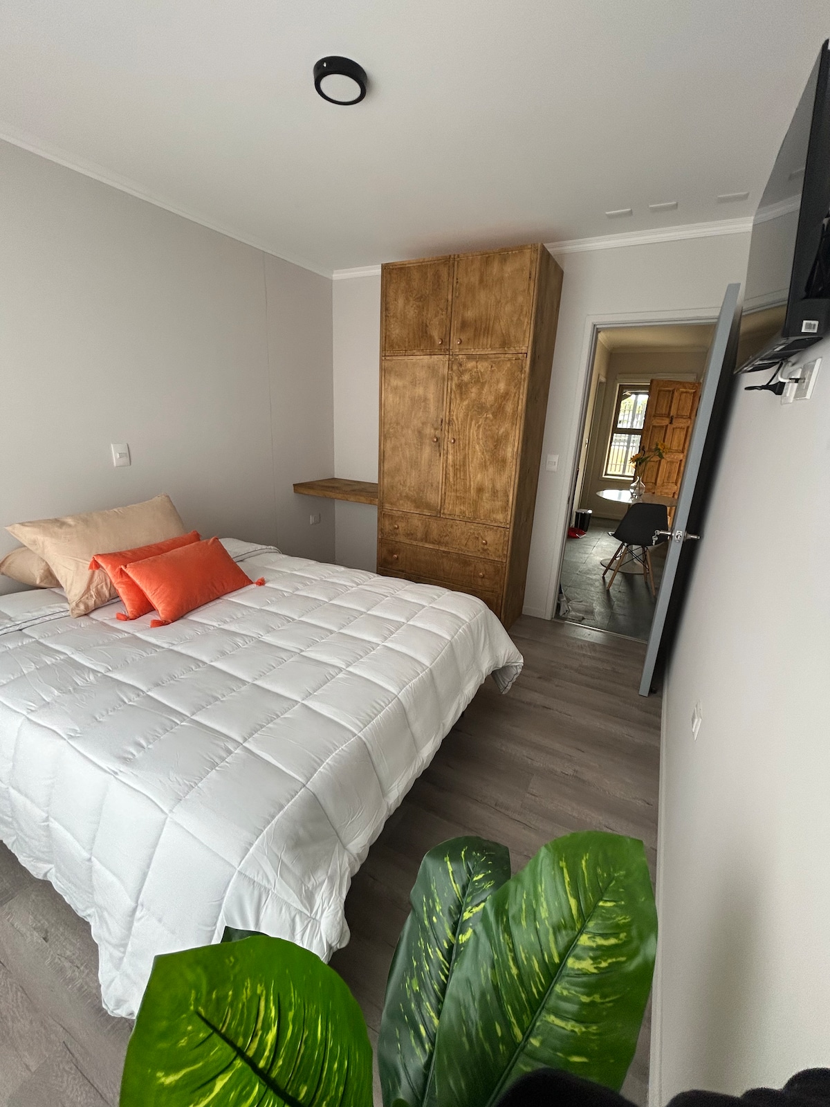 Disfruta una estadía excepcional en este acogedor depto. de 2 dormitorios y 2 baños, ubicado una zona segura y de excelente conectividad. Cuenta con amplio living comedor, cocina independiente, balcón cerrado c/ vista panorámica y estacionamiento privado. A pasos encontrarás un strip center con farmacia, pastelería, licorería, carnicería y minimarket, y a minutos además supermercado, restaurantes y el centro de la ciudad. Edificio con conserjería 24 hrs, ascensores, quincho y gimnasio