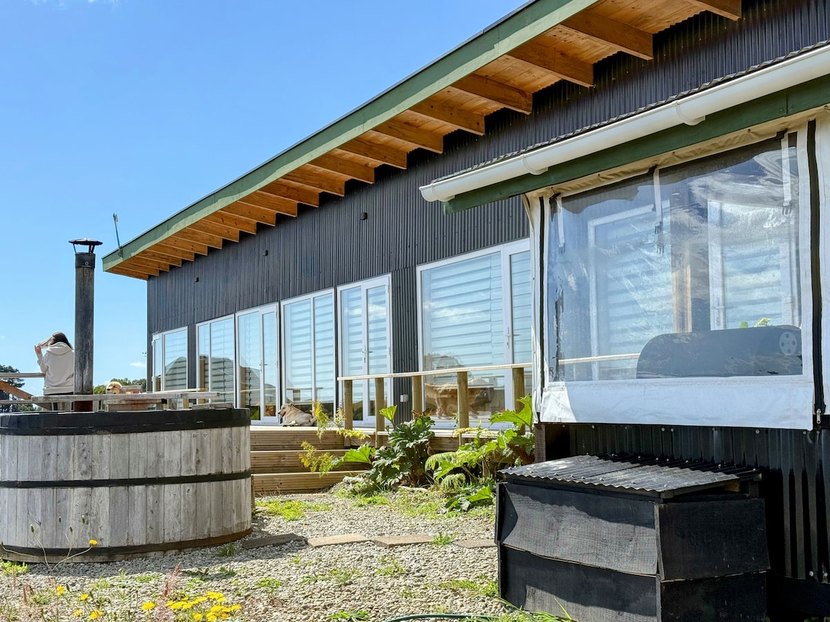 Ubicado en tranquilo sector rural a 8 km de Castro, con amplio patio rodeado de vegetación nativa y un paisaje encantador. Las cabañas cuentan con cocina equipada, tv cable y agua caliente. Cada cabaña tiene 2 dormitorios, uno cama matrimonial y otro dos camas de 1 ½ plaza. También hay cama elástica para los niños. Las cabañas se entregan debidamente limpias y desinfectadas, con cambio de sábanas, etc. Cada día de estadía incluye acceso a piscina temperada o jacuzzi, a elección.