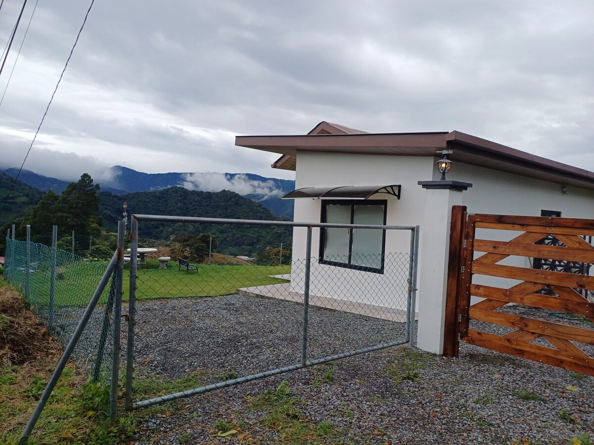 Venga a conocer las bellezas de Boquete y quedarse tranquilamente en esta casita a solo 3 kilómetros del pueblo. Tiene estacionamiento cerrado, una terraza con vistas de las fincas de cafe y las colinas de Palo Alto, y un jardín para disfrutar los aires de Chiriqui. Puede preparar una merienda en la pequeña cocina y llegar fácilmente a uno de los excelentes restaurantes de Boquete para cenar. Traiga una chaqueta para las mañanas frescas y zapatos para caminar los senderos.