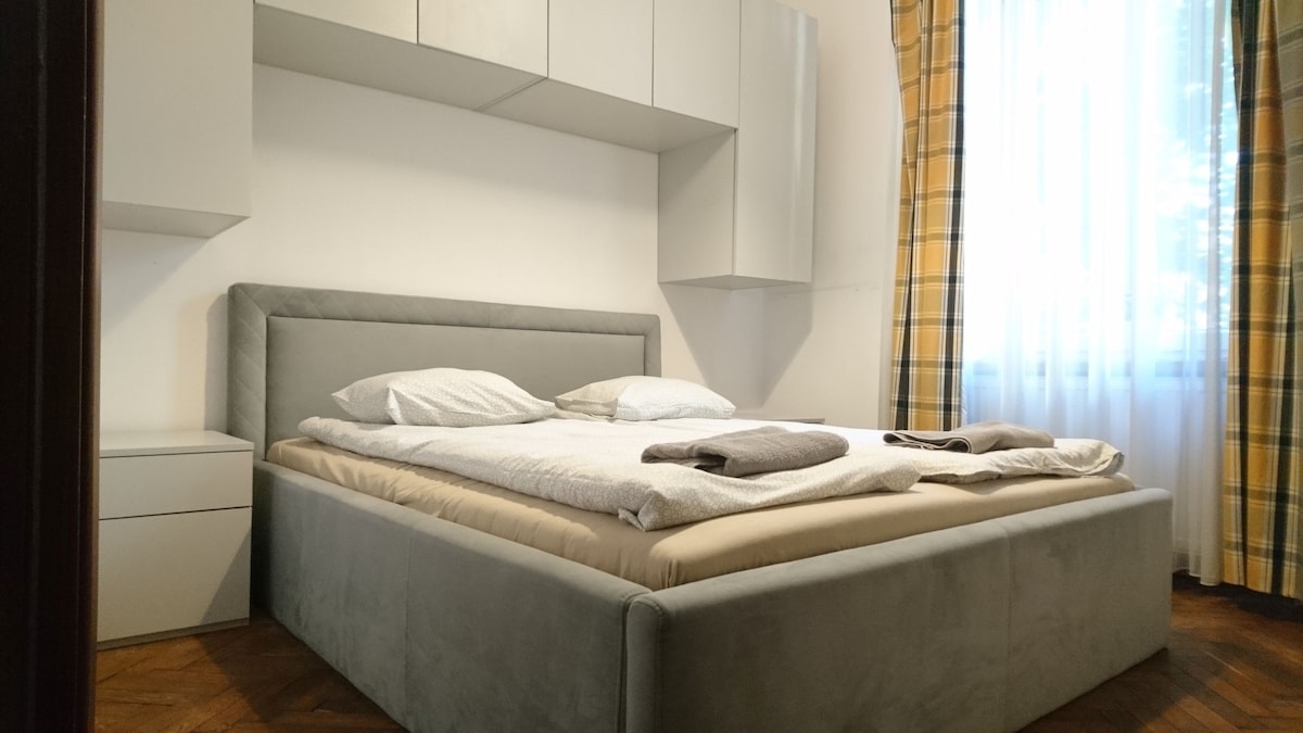 Welcome to our thoughtfully designed apartment, perfect for remote workers and travelers alike! This modern space comfortably accommodates up to 4 guests, featuring: - Two separate bedrooms - Spacious living area with an open-concept kitchen and the AC - Bathroom with a bathtub - Dedicated workspace with Wi-Fi Whether you're working remotely or exploring the city, our apartment offers comfort, convenience, and tranquility. Book your stay today!